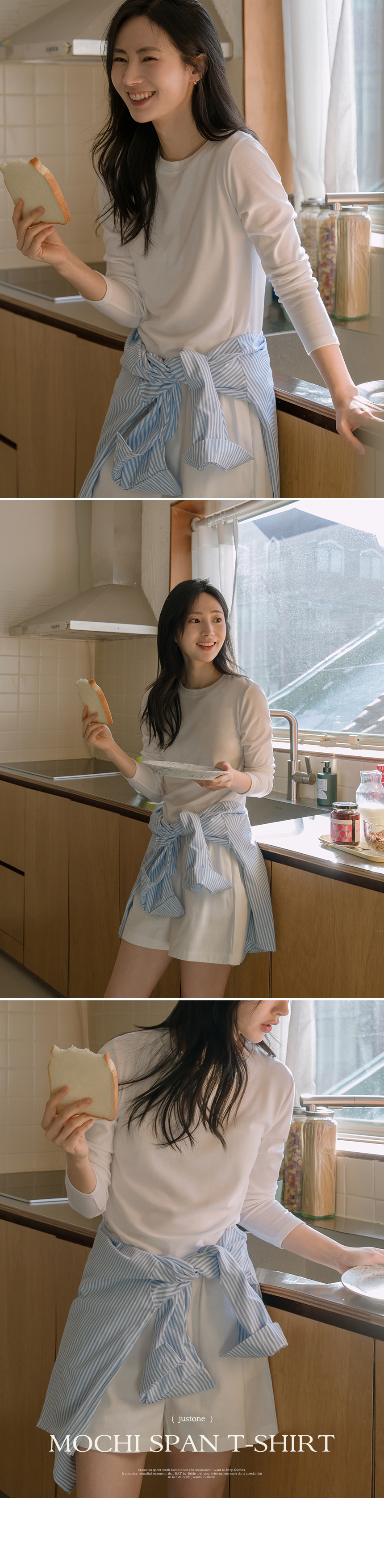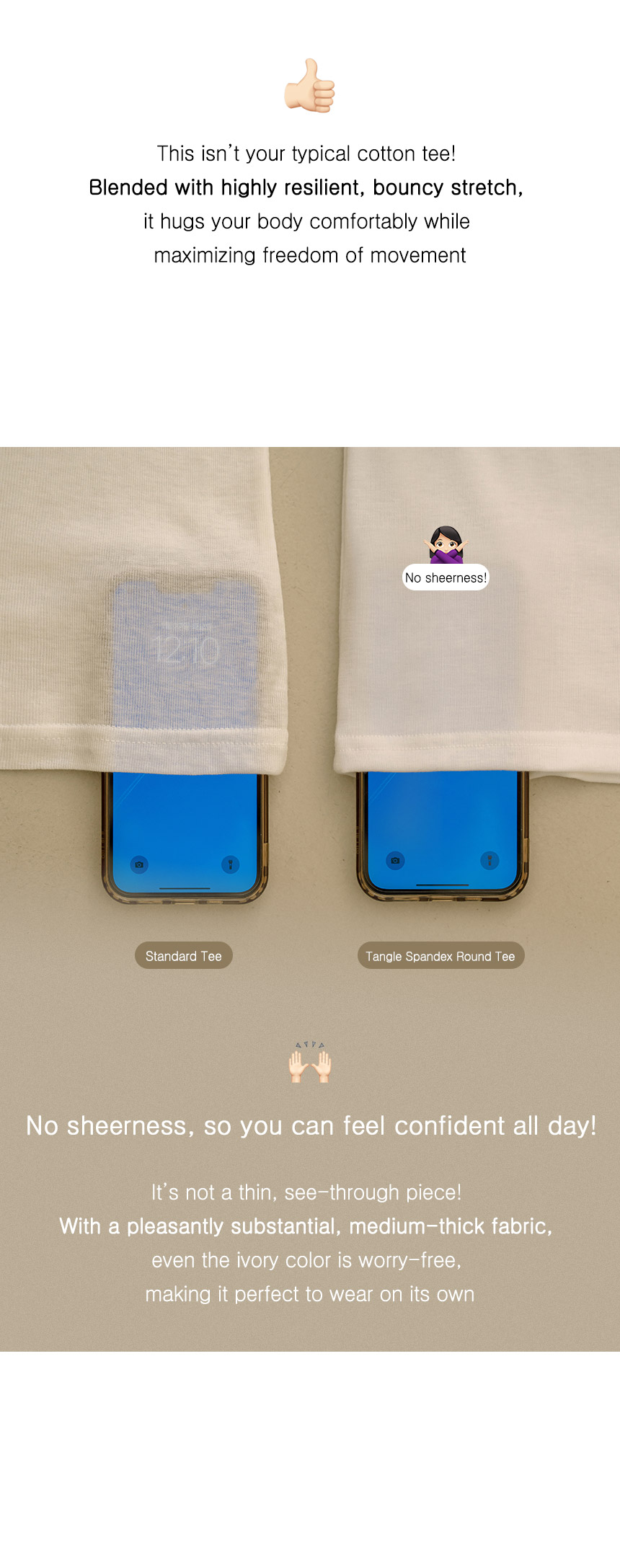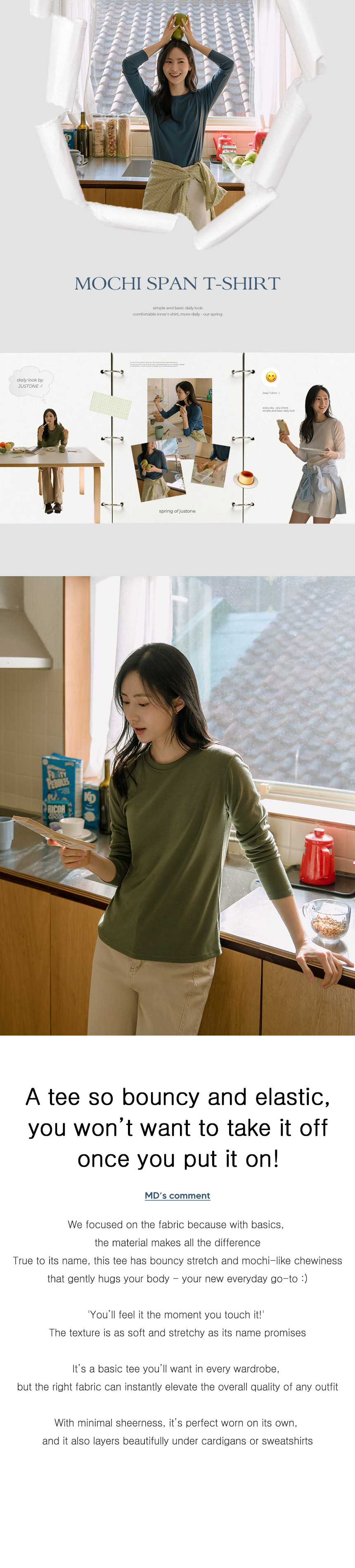True to its name, this T-shirt is made from bouncy spandex for incredible comfort! The ivory color is slightly sheer, and the relaxed fit makes it a perfect basic for layering or wearing as an inner piece. Grab it now at a great price :)