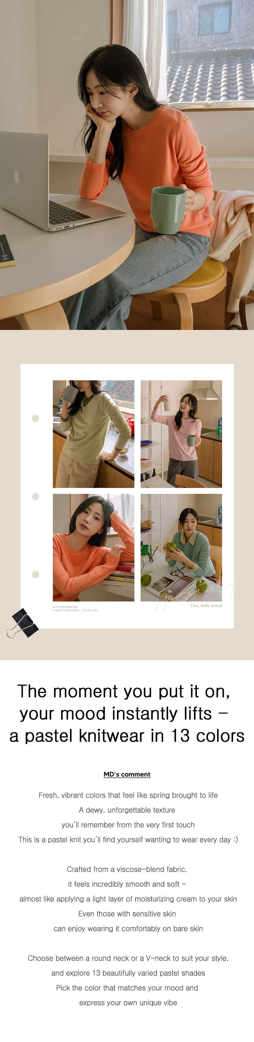 Moist-Touch Pastel Knitwear (Round/V-Neck)