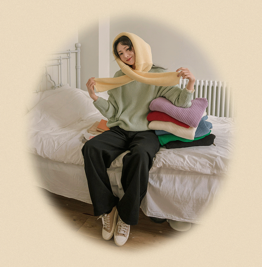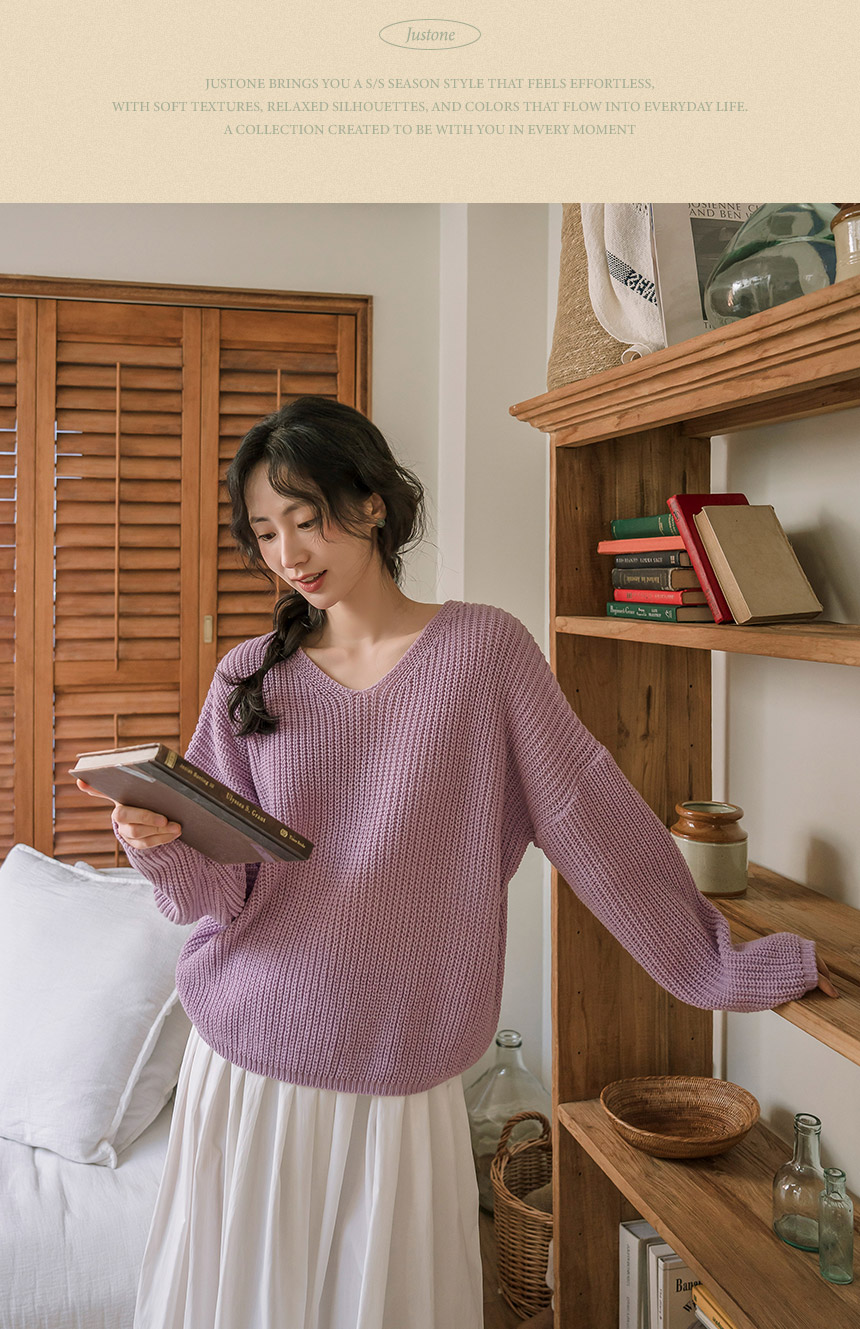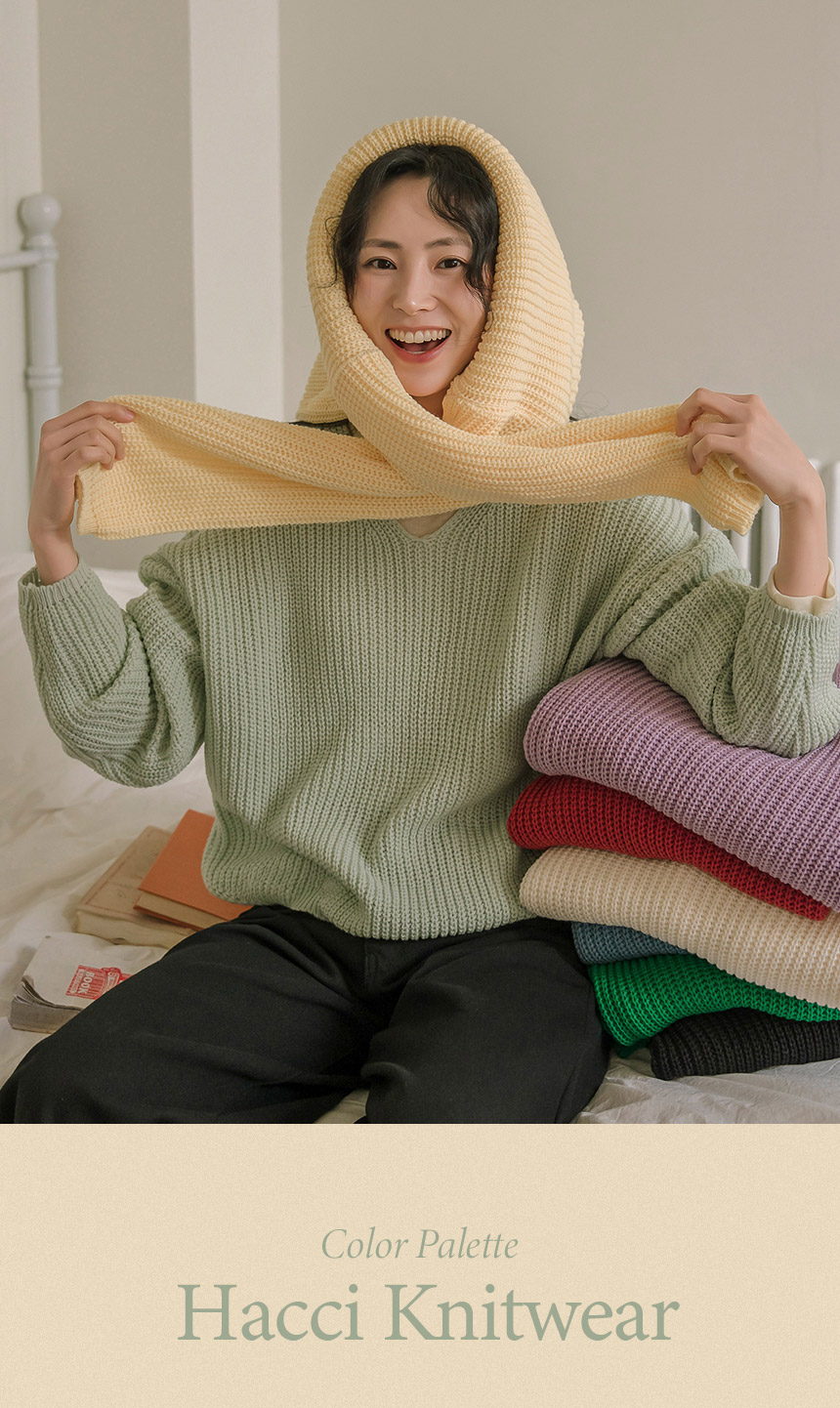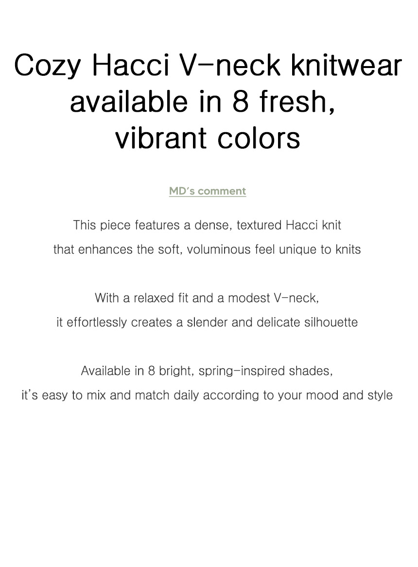 This piece features the soft, fluffy volume of knitwear with a textured, textured hacci weave. The loose fit and V-neck create a comfortable yet refined look, perfect for everyday wear. Available in 8 vibrant colors, it’s a cheerful addition to any wardrobe ♥