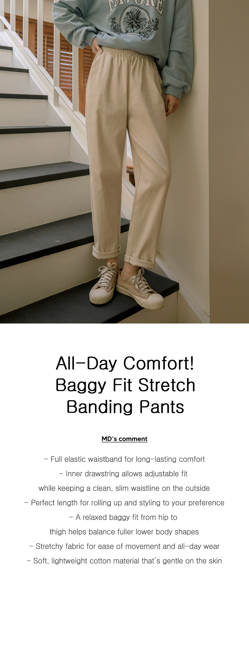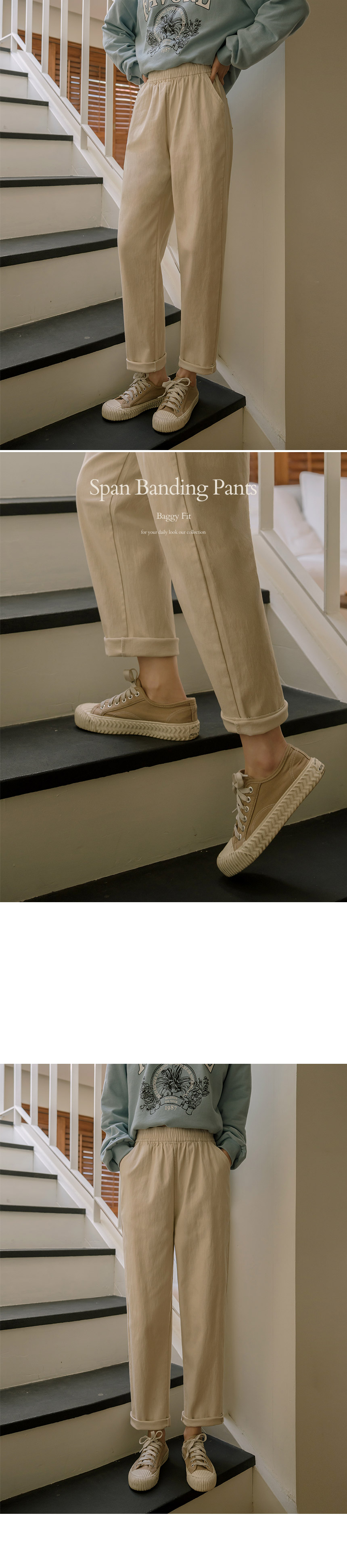 Slim-Leg Effect Baggy Fit Spandex Banding Pants