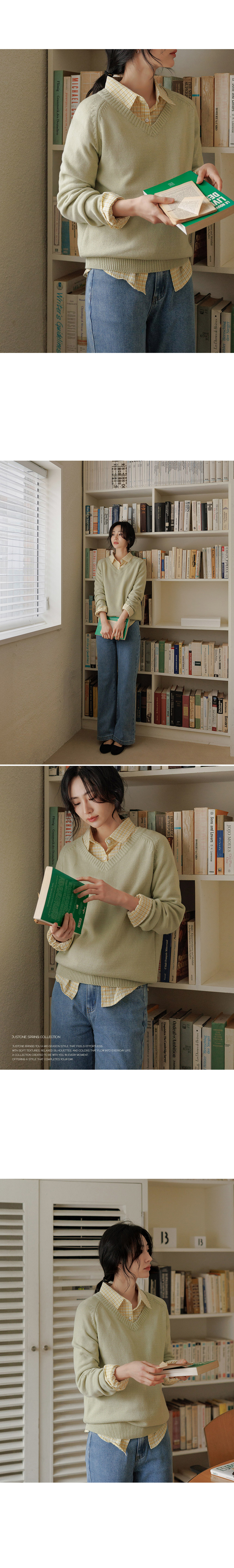 Backpoint color embroidery V-neck knit