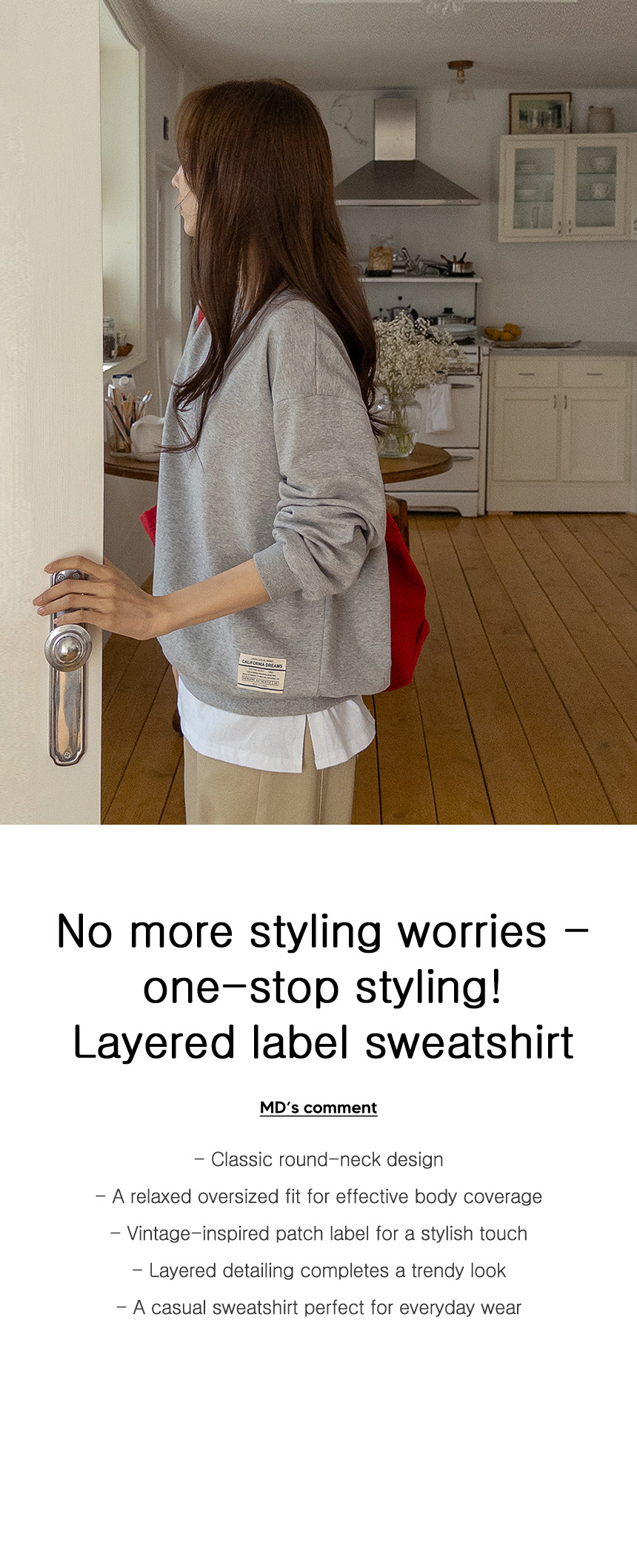 This layered label sweatshirt creates a stylish look without the need to layer a t-shirt underneath. Its relaxed, loose fit makes it perfect for casual wear.