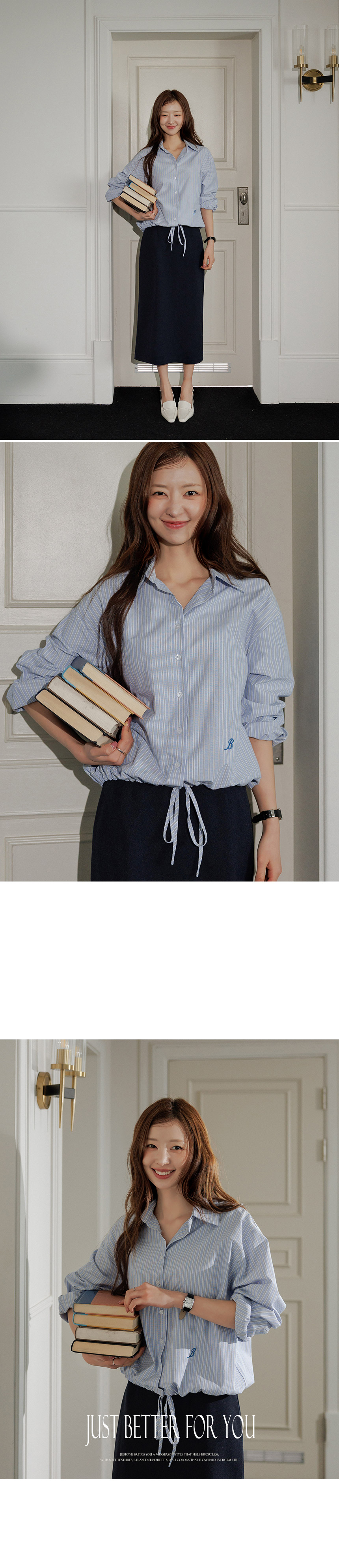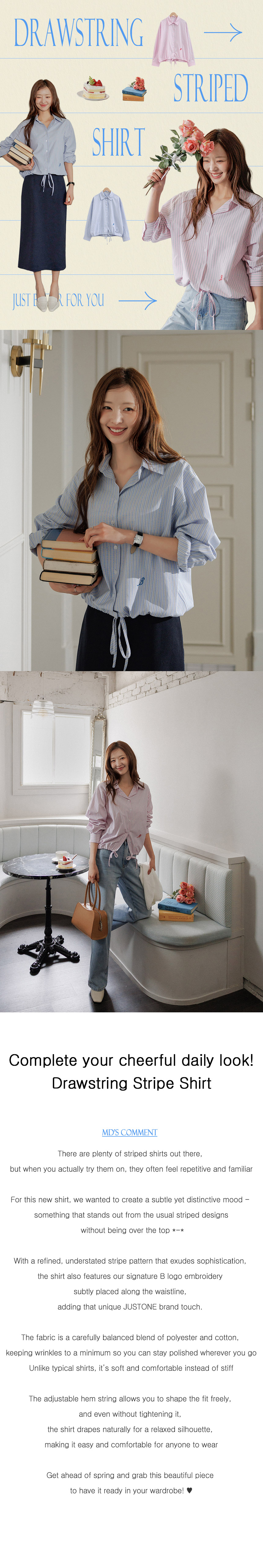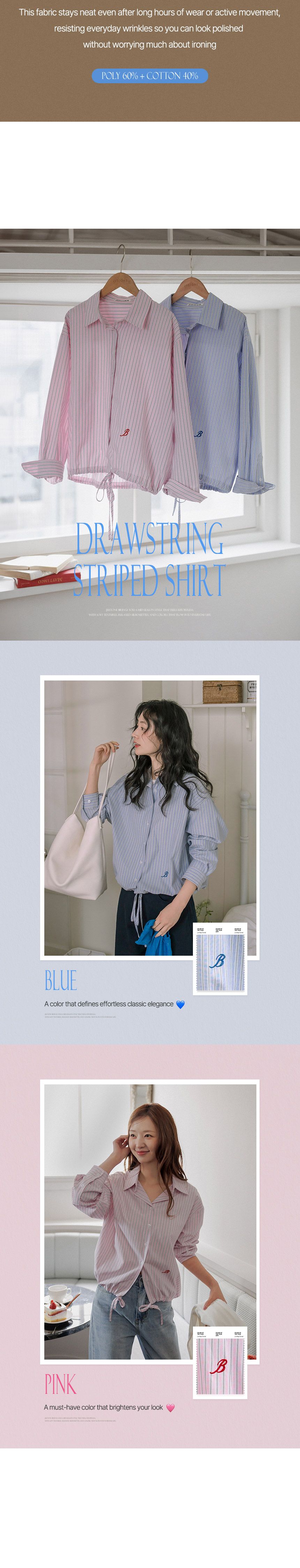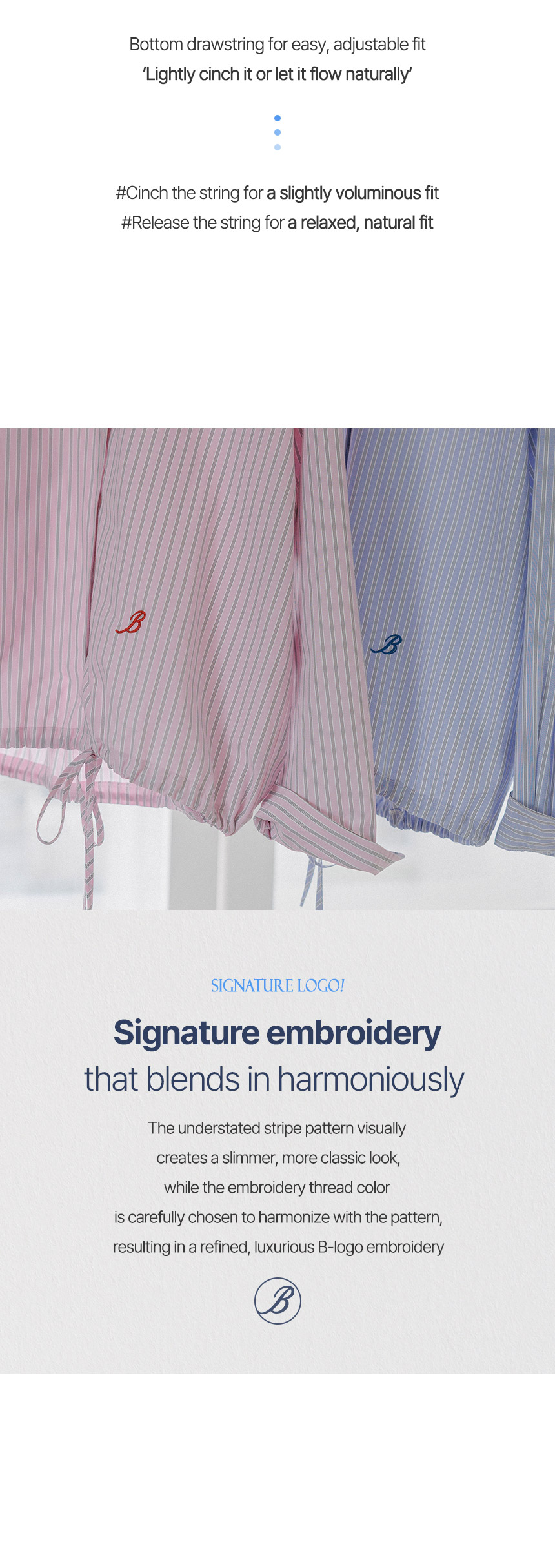 A sophisticated shirt featuring a subtle stripe pattern! The signature “B” embroidery adds a stylish touch, while the drawstring allows you to adjust the fit to your liking. Made from easy-care fabric, it resists wrinkles for effortless wear. ♥