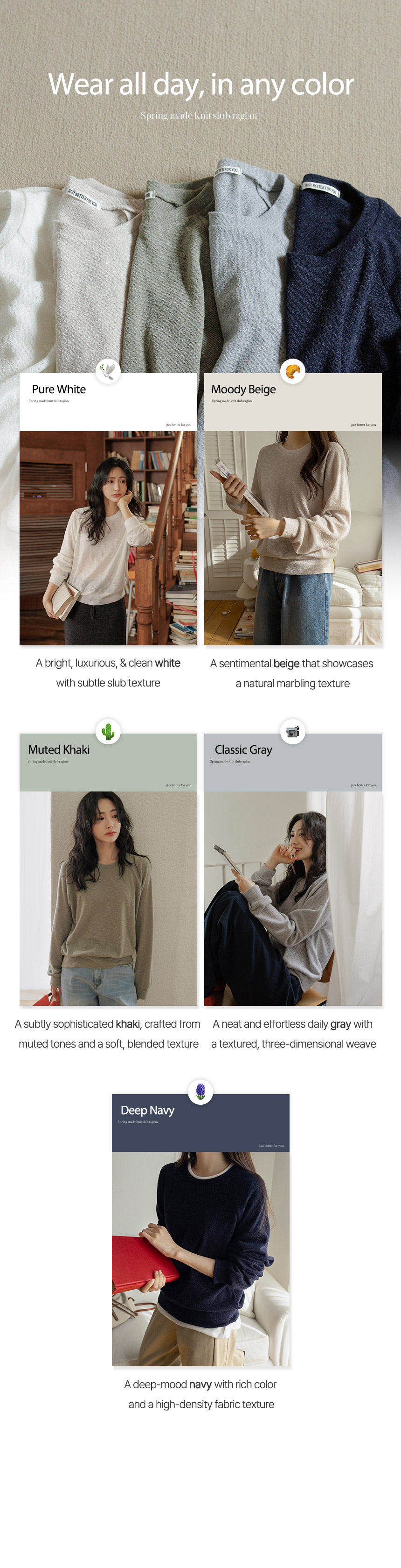 [JUST BETTER] Slub Raglan Knit Tee
