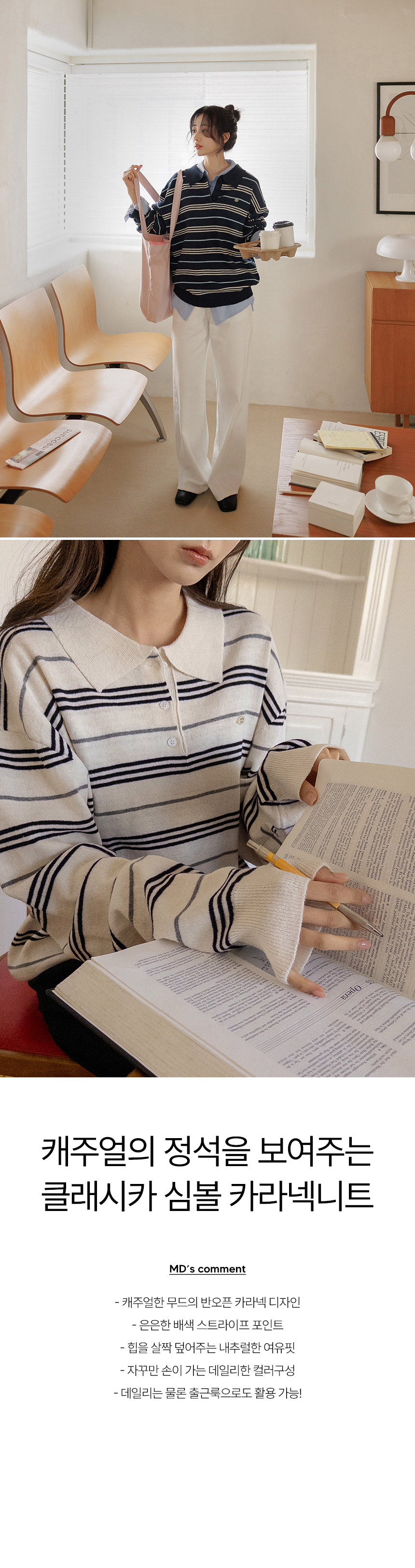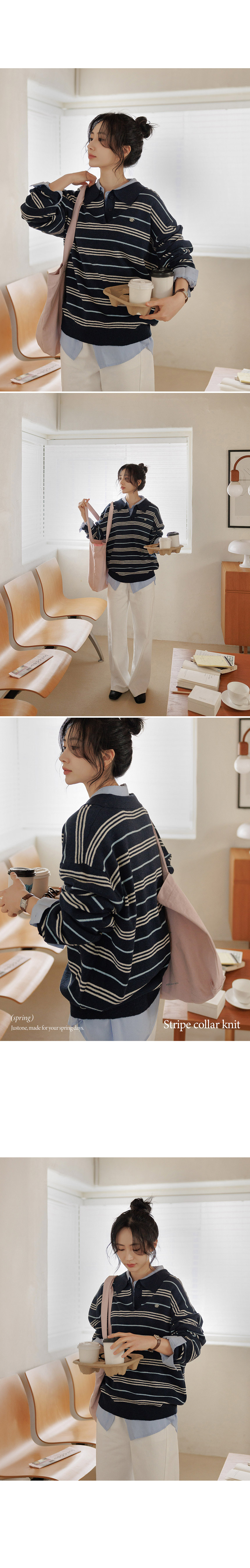 This relaxed-fit collared knit top is both comfortable and flattering. Its lightweight, loose-knit fabric drapes beautifully, creating a slender and feminine silhouette.