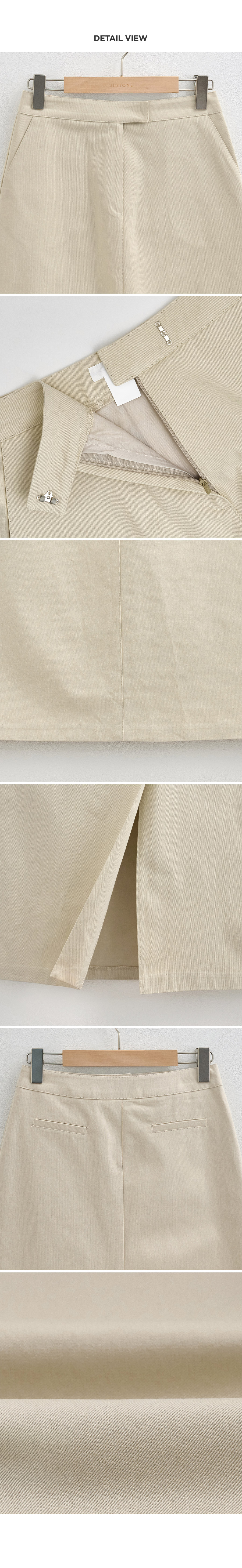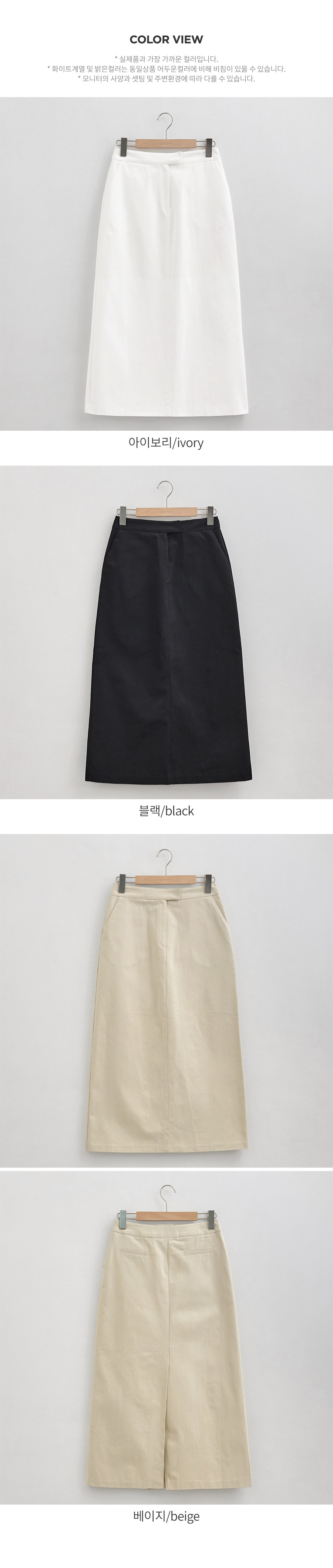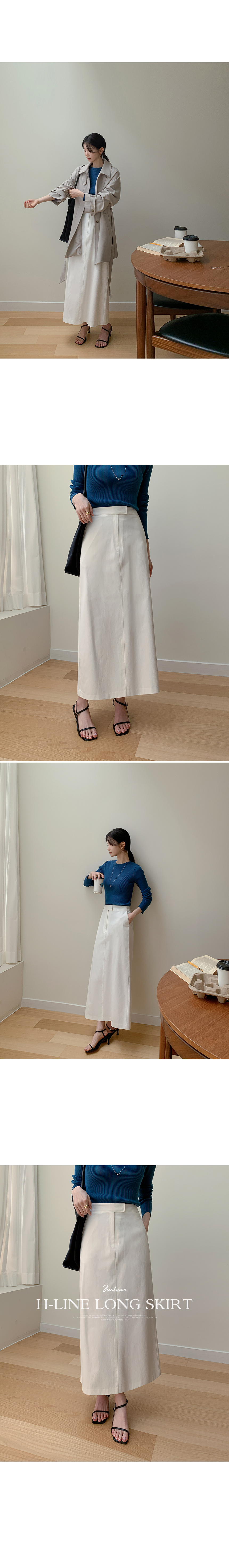 This skirt features a relaxed H-line silhouette that gracefully covers the lower body. Made from lightweight yet durable fabric with moderate thickness, it offers easy movement and a polished look, complete with back slit details for added style and comfort.