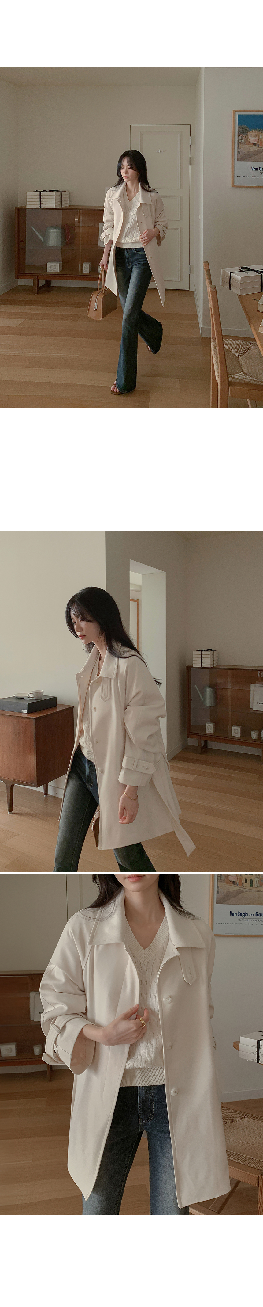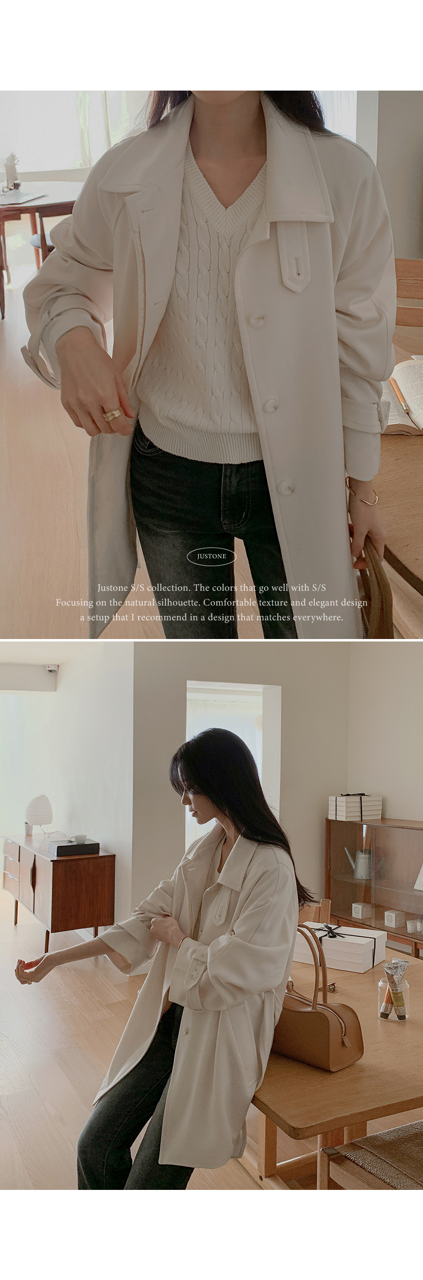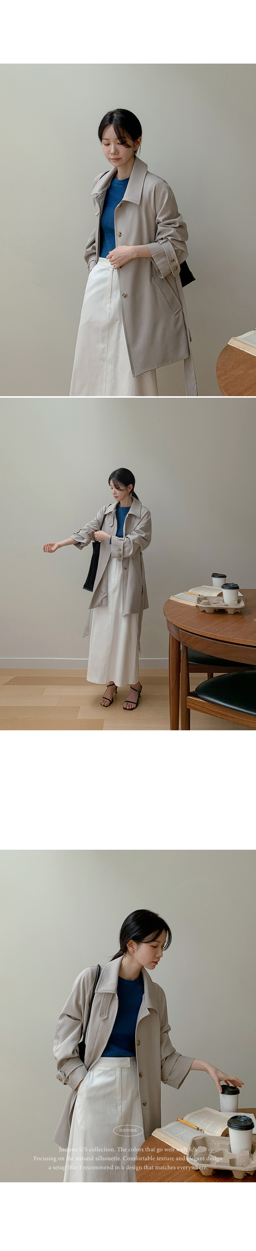 This trench coat features a raglan design that creates a sleek, slender shoulder line. Its stable half-length falls over the hips, while the chic high neckline and hidden button details offer a polished, streamlined look.
