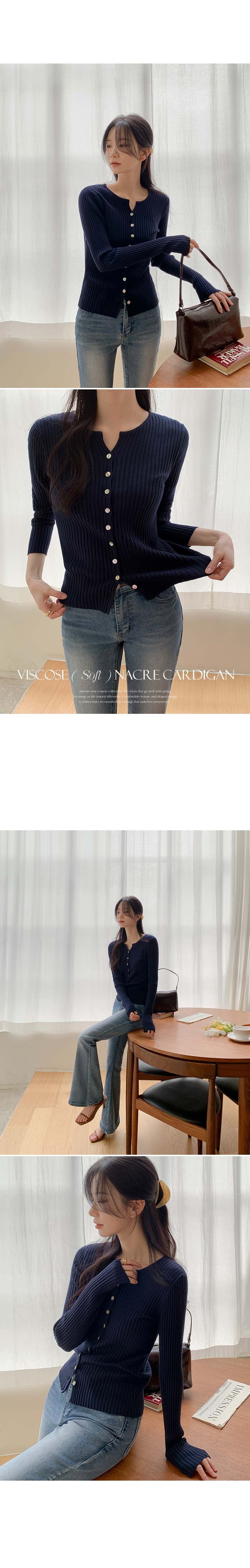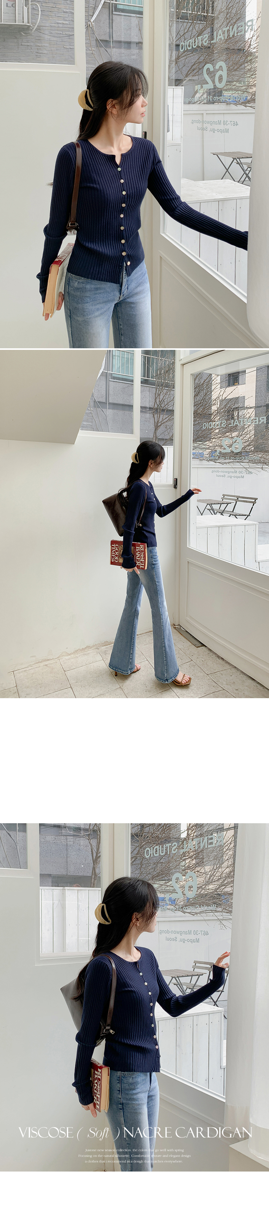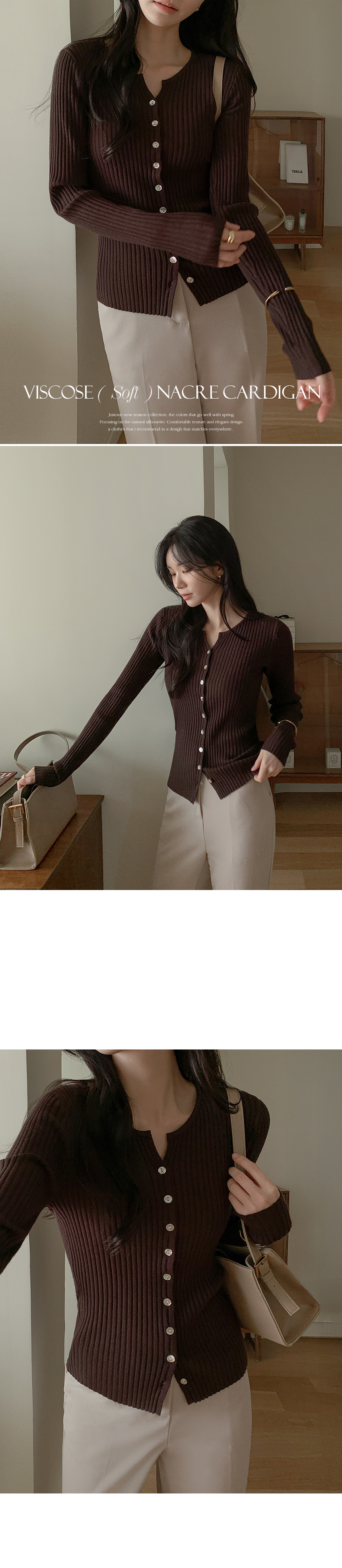 This slim-fit cardigan features a fine ribbed weave for a sleek silhouette. The subtle V-neck adds a touch of elegance, while the viscose blend ensures a soft and comfortable feel.