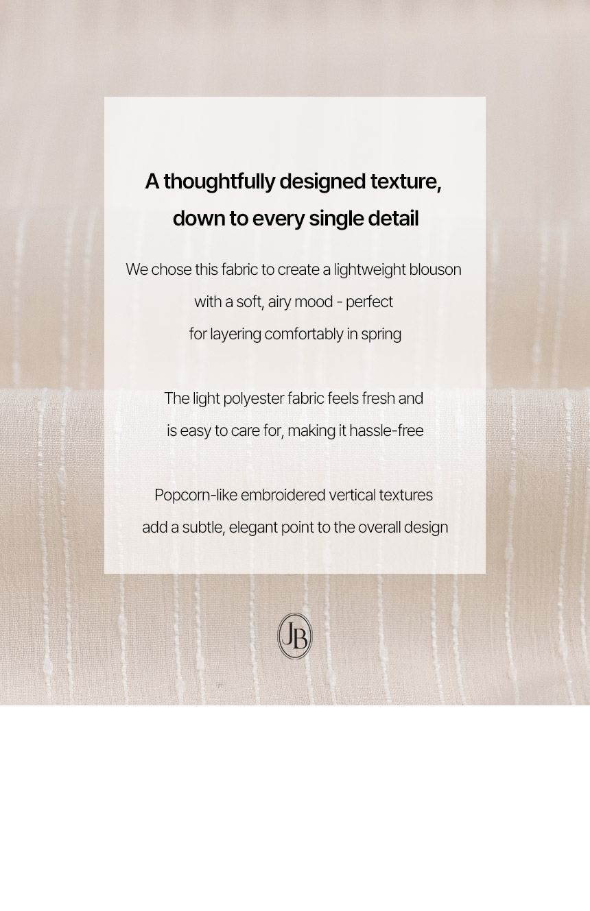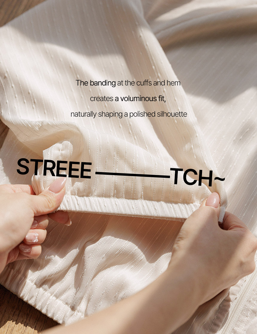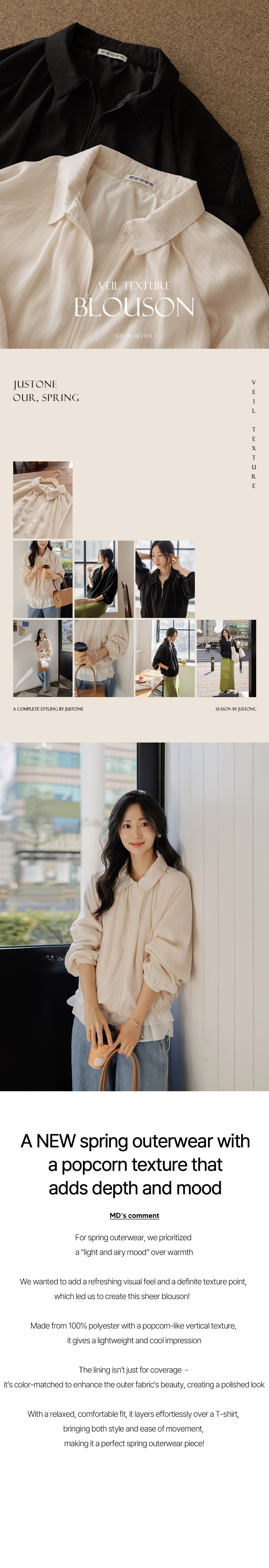A lightweight sheer blouson with a popcorn-like, three-dimensional texture adds a refreshing feel! We recommend this outerwear for both mobility and style.