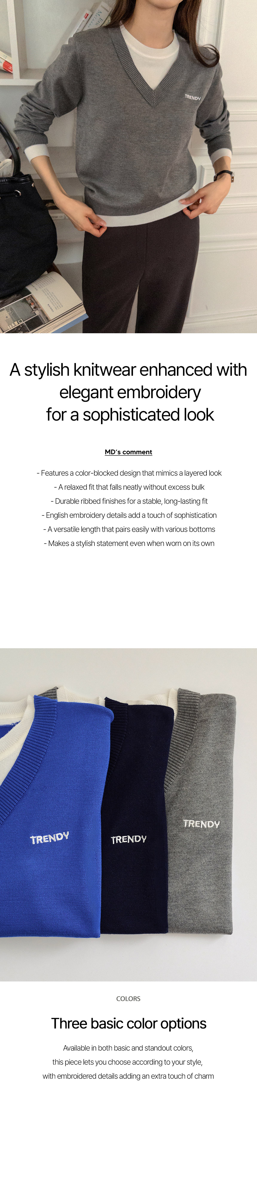 V-neck Layered Embroidered Knitwear