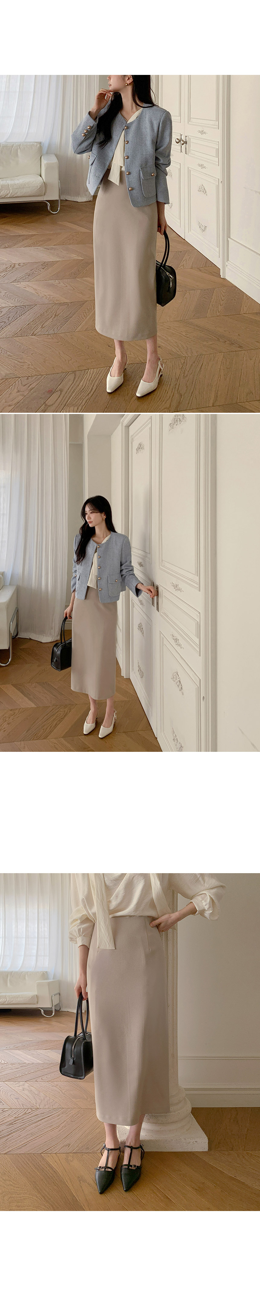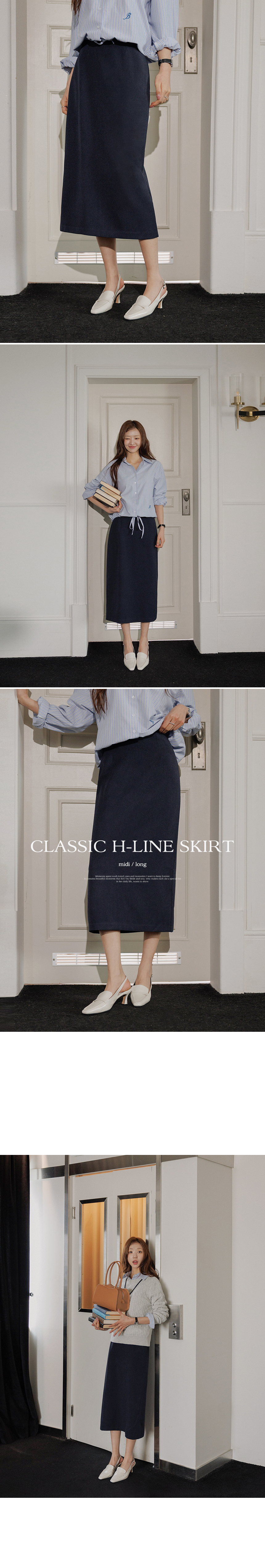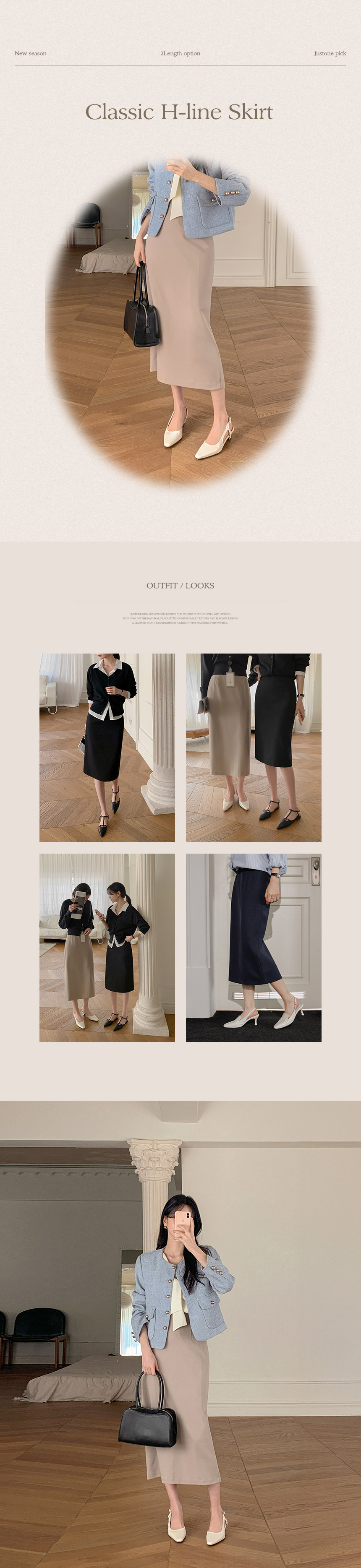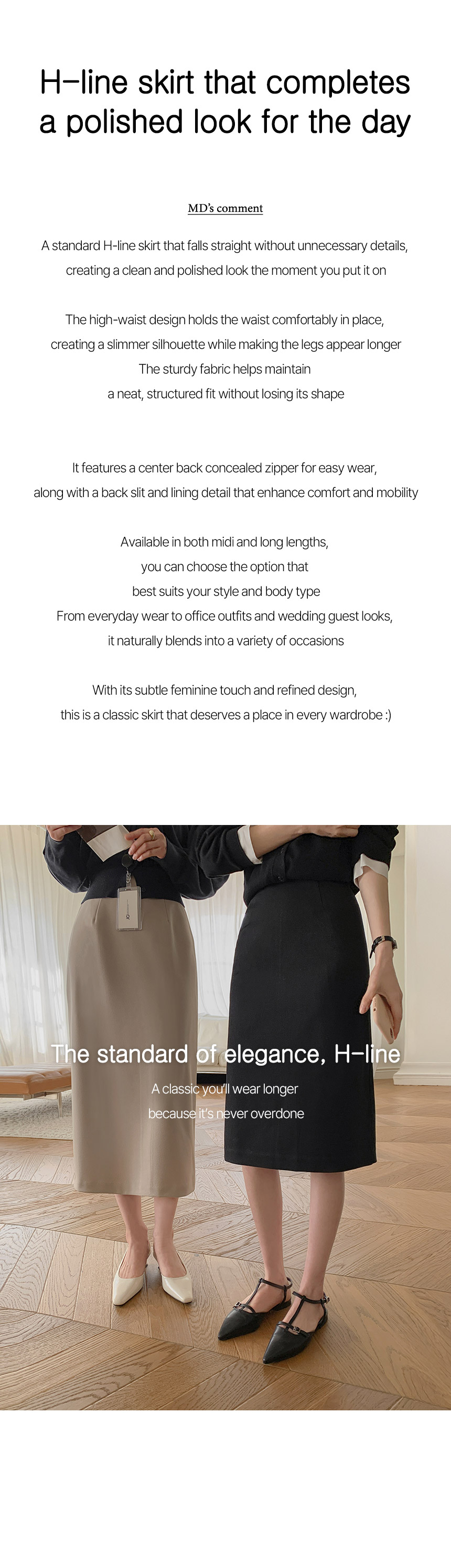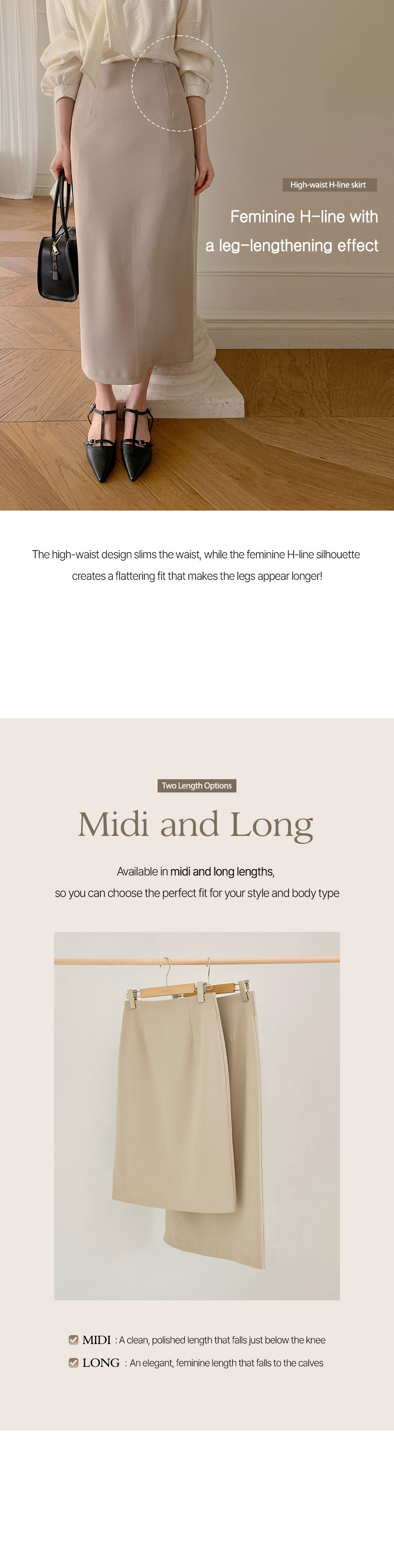 This H-line skirt is designed for a clean, polished look. Its high-waist design creates a flattering silhouette, and with two length options of midi and long, allowing you to choose the perfect fit for your body type.