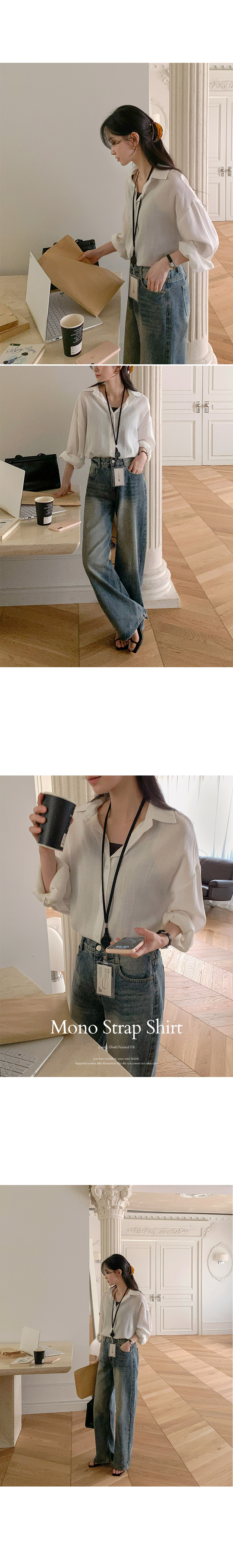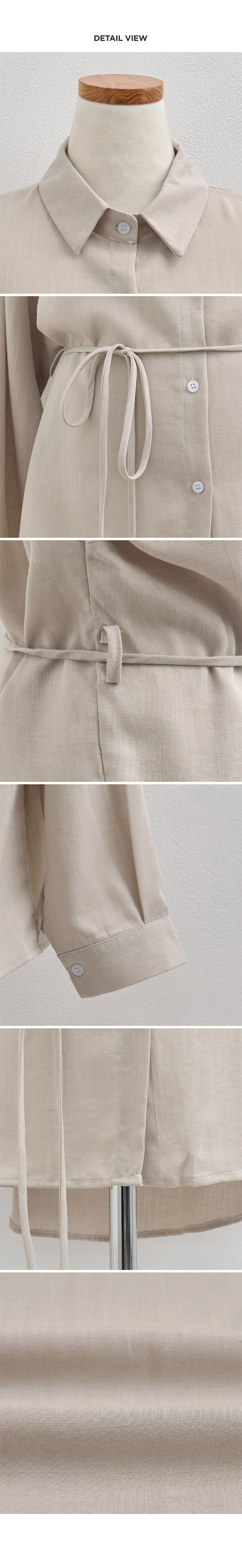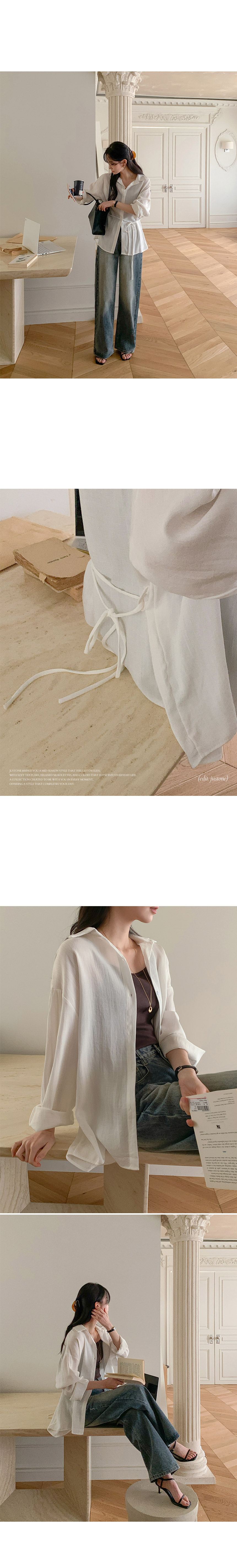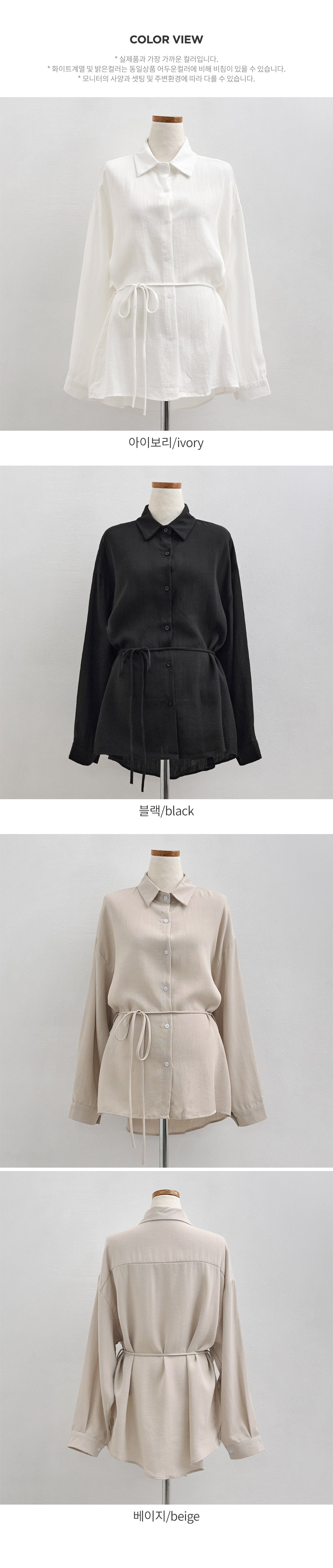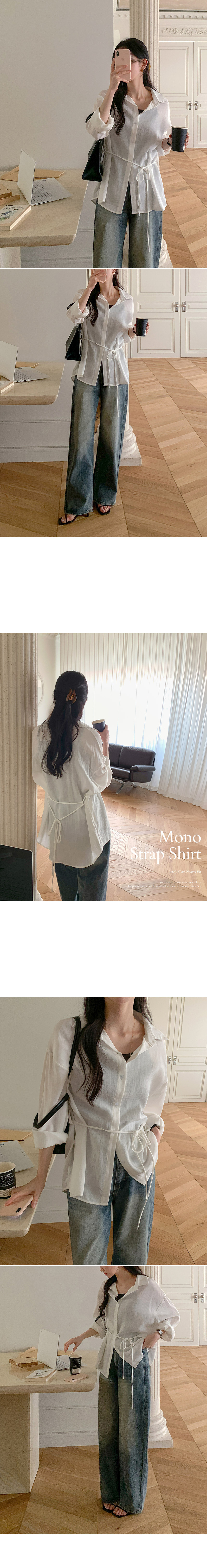 This shirt features a waist strap that allows you to adjust the fit in various ways. The loose silhouette offers comfortable wear for different body types. It can be styled on its own or layered as a light outerwear piece.