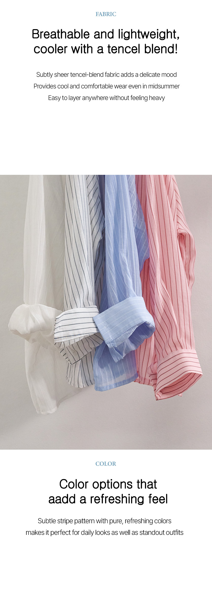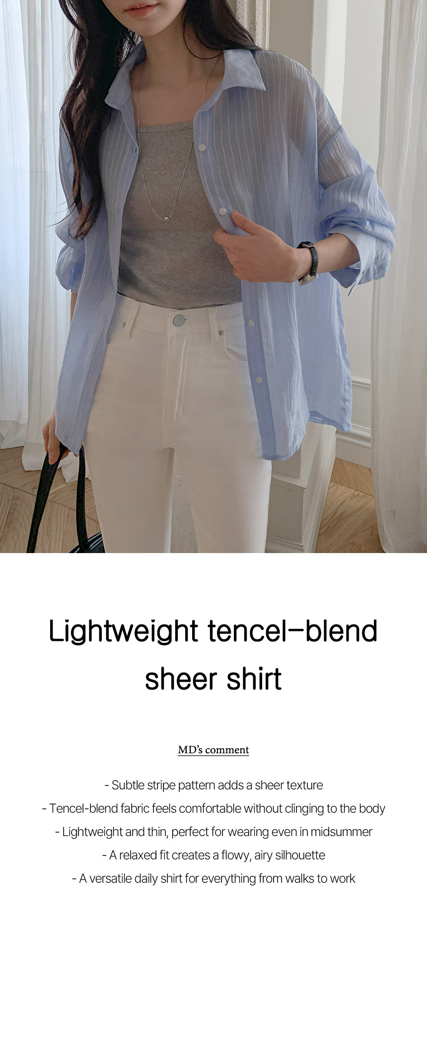 This shirt features a lightweight, sheer texture that makes it stand out. Crafted from a Tencel blend, it provides a comfortable fit and is a must-have even in midsummer. Perfect for a cool, everyday look!