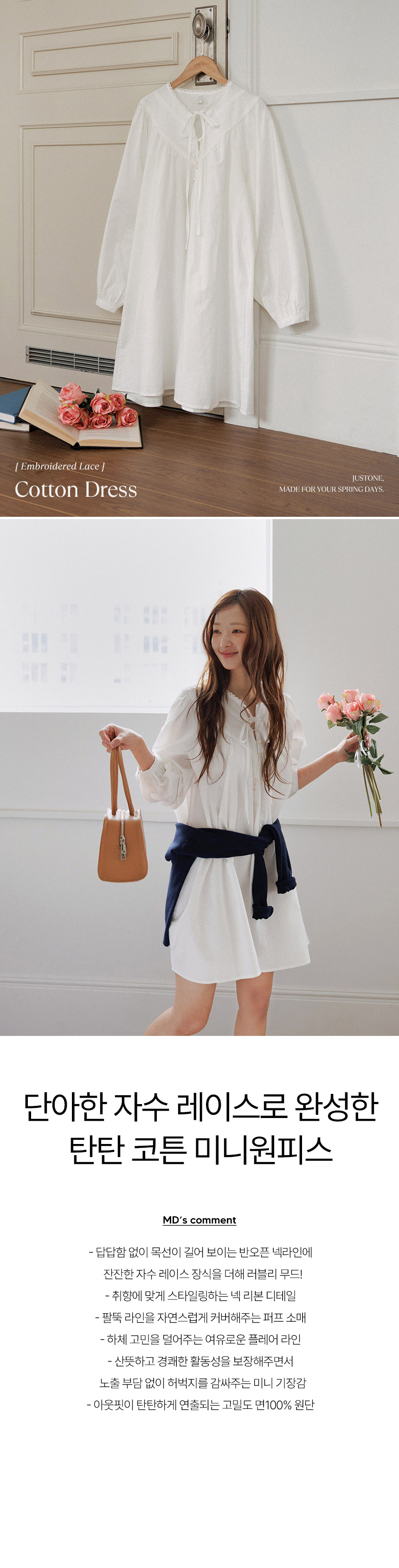 This one-piece dress features delicate embroidered lace detailing that adds a lovely, feminine touch. Made from high-density 100% cotton fabric, it offers a structured and durable feel. The flared silhouette creates beautiful volume for an elegant and flattering look.