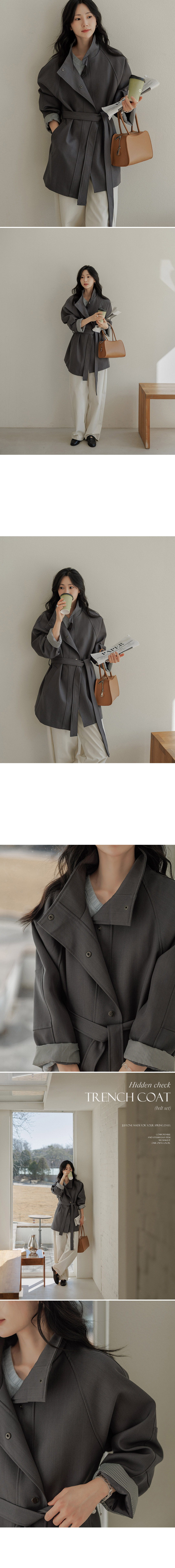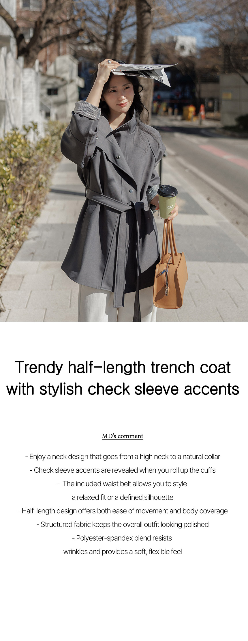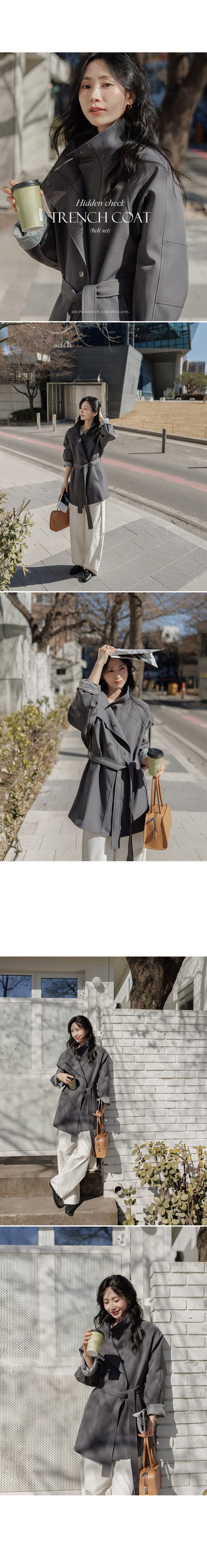 Hidden Check Rolled-up Trench Coat (Belt Set)