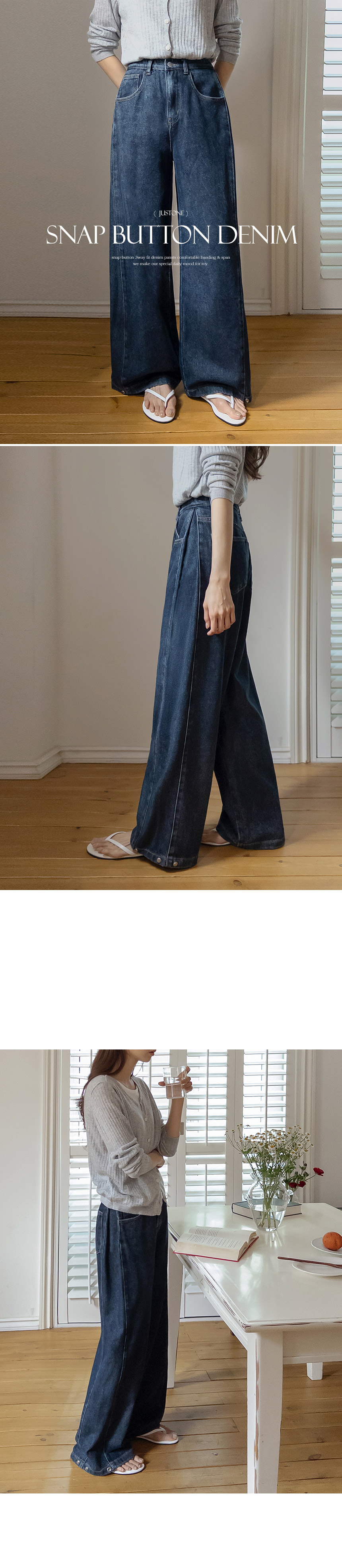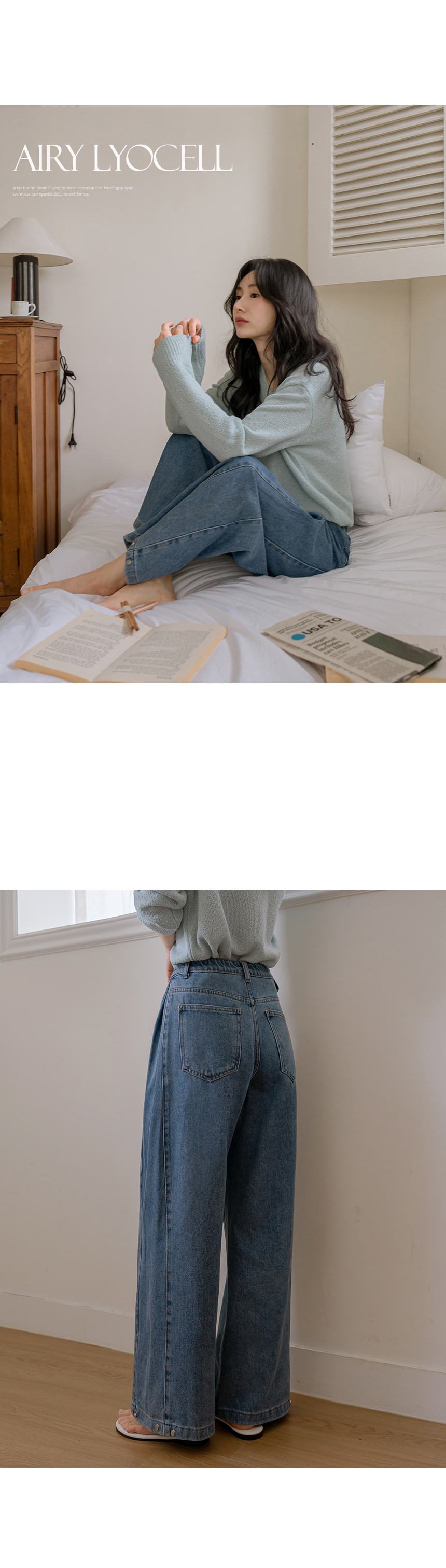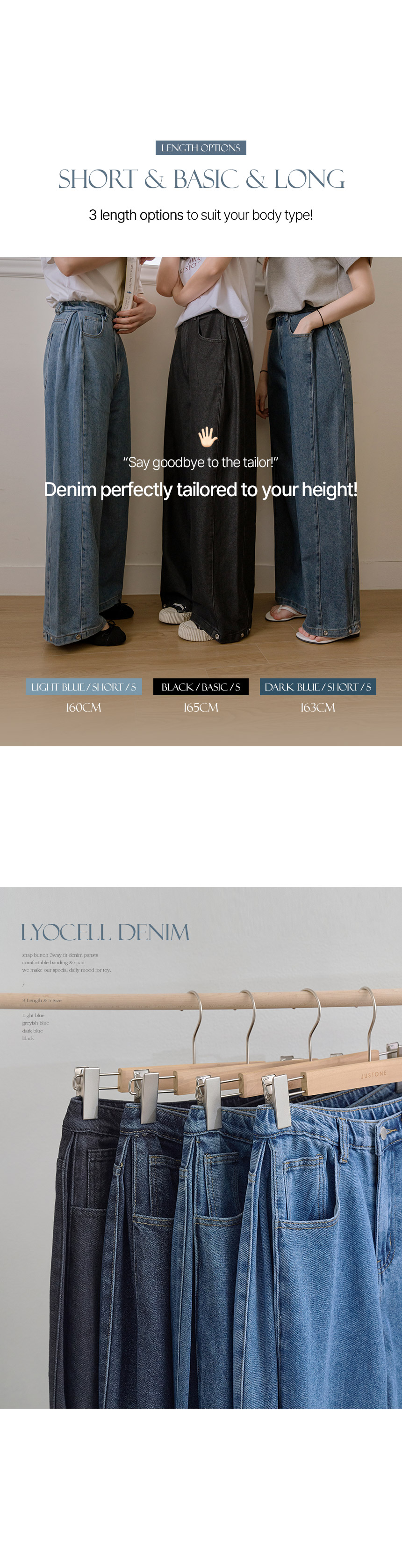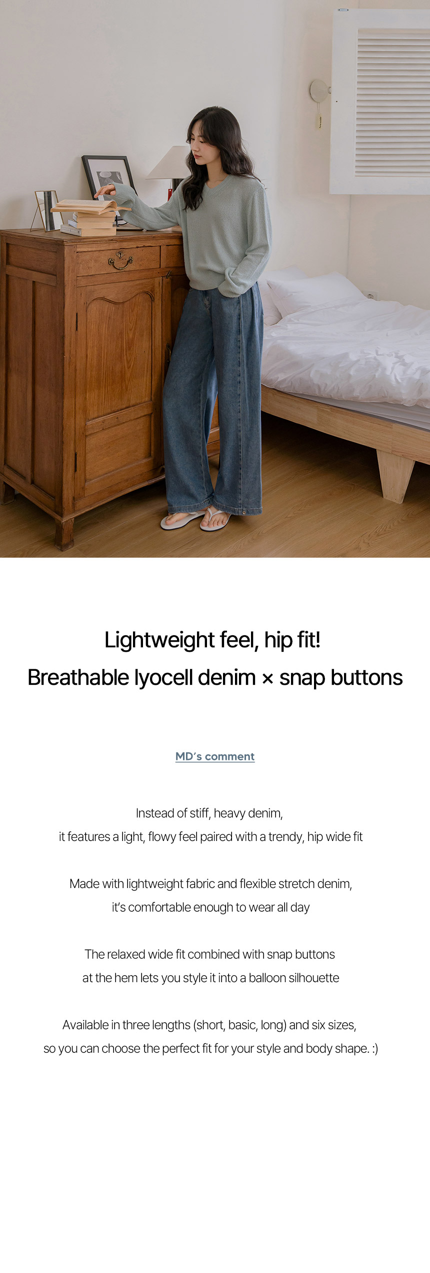 [✨Silk-like denim✨] Lyocell Snap-Button Wide Jeans (Short/Basic/Long)