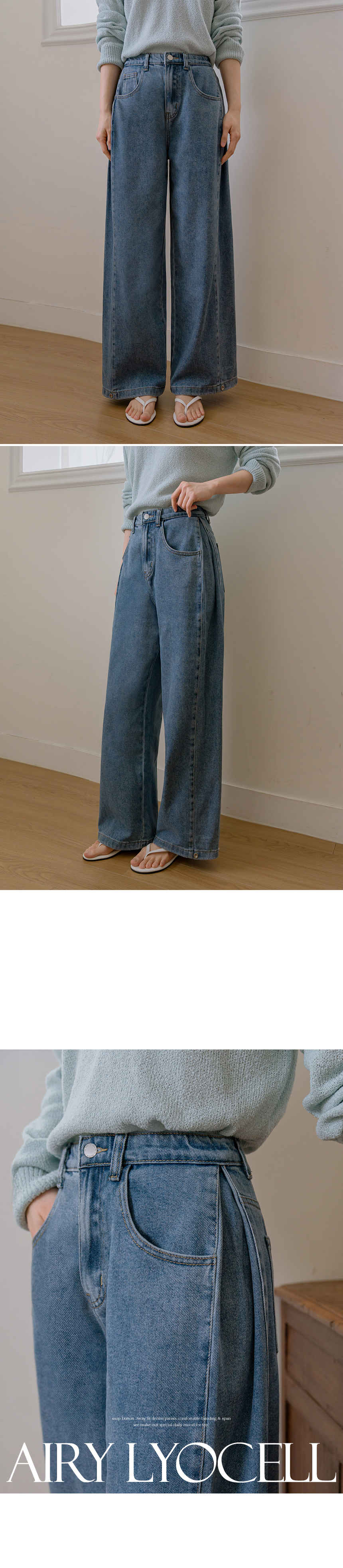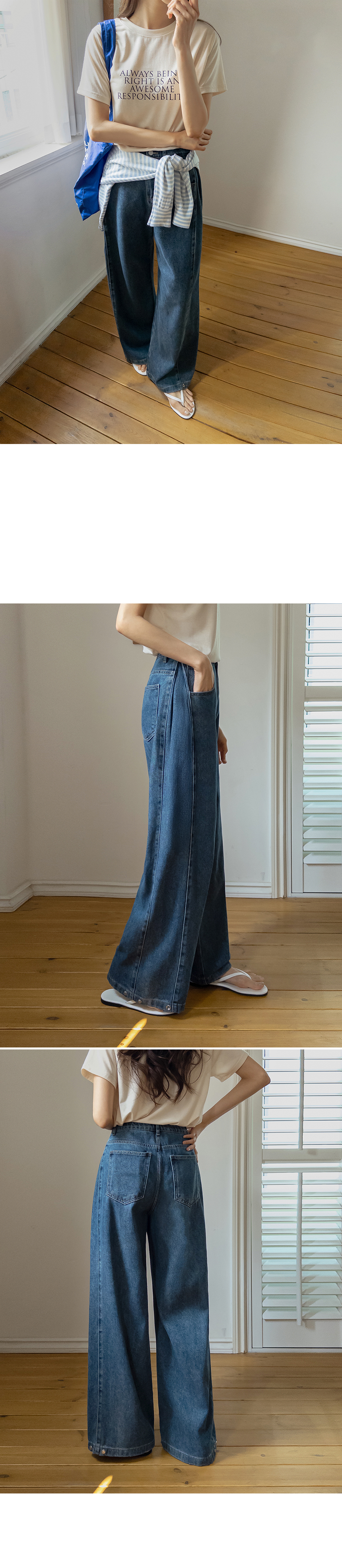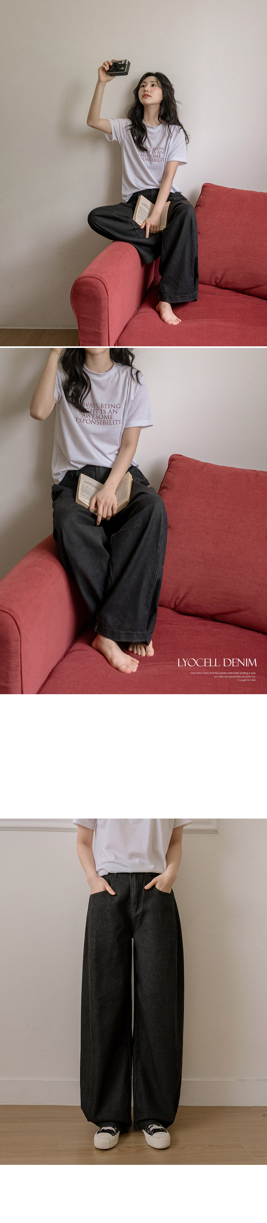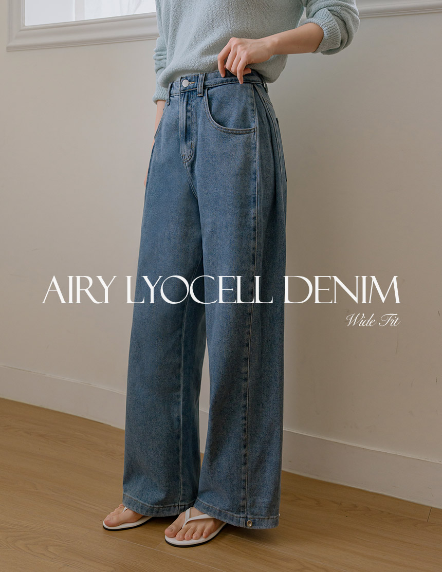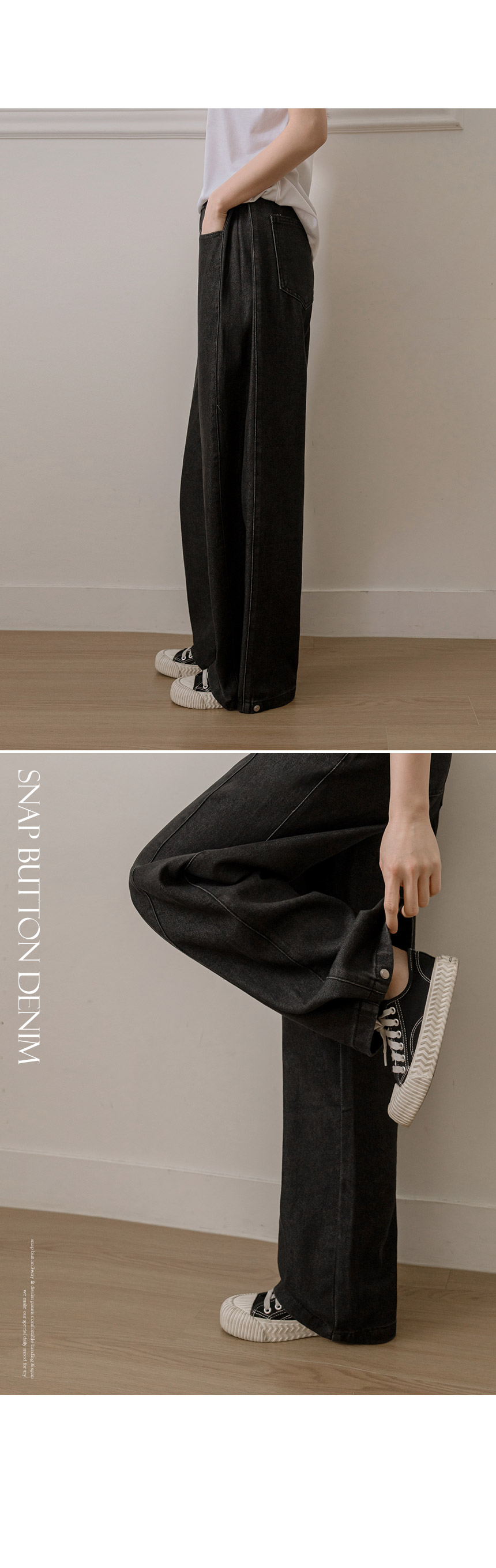 [✨Silk-like denim✨] Lyocell Snap-Button Wide Jeans (Short/Basic/Long)