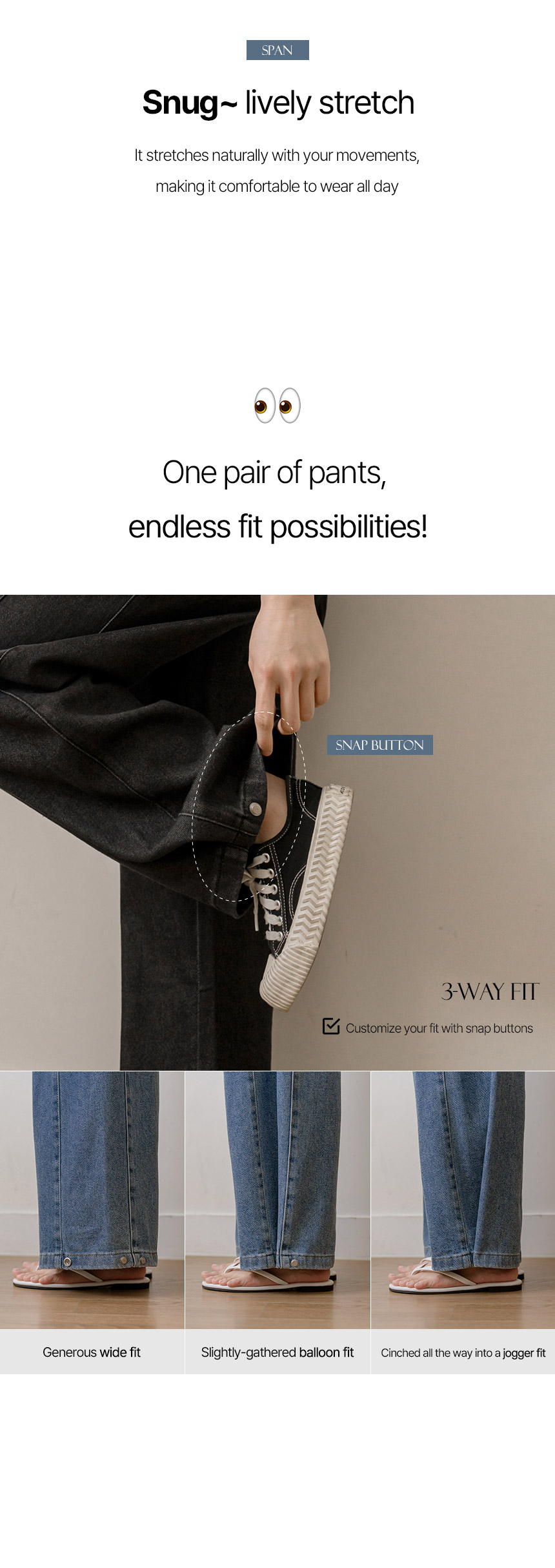 Thanks to soft, flexible lyocell, these denim pants are surprisingly lightweight! Featuring wide legs and snap-button hems for an adjustable fit, they’re available in three lengths of Short, Basic, and Long.