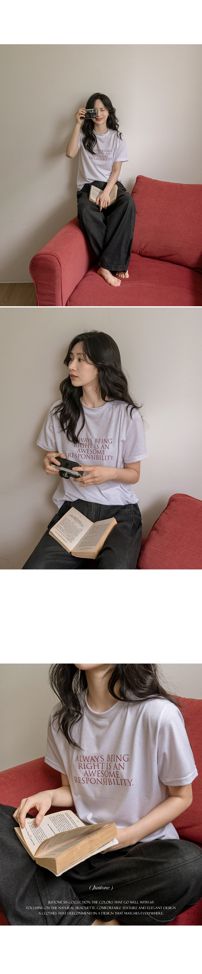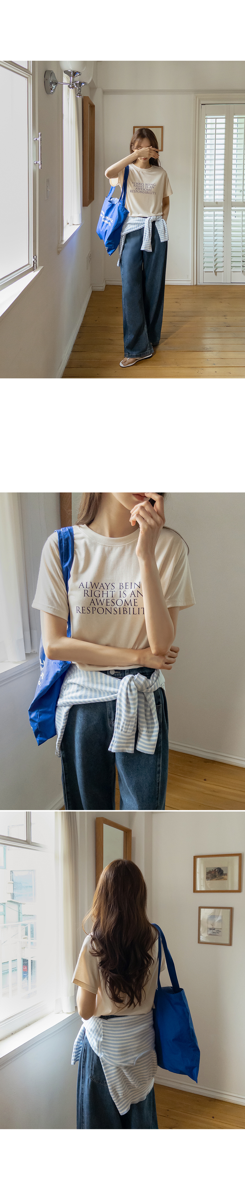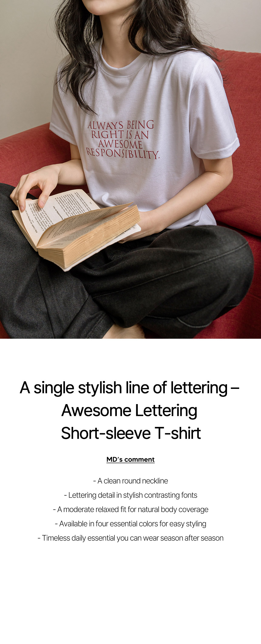 This basic short-sleeve T-shirt is soft, comfortable, and easy to wear. The clean lettering adds a subtle touch of style, making it perfect on its own or layered under a jacket or cardigan.