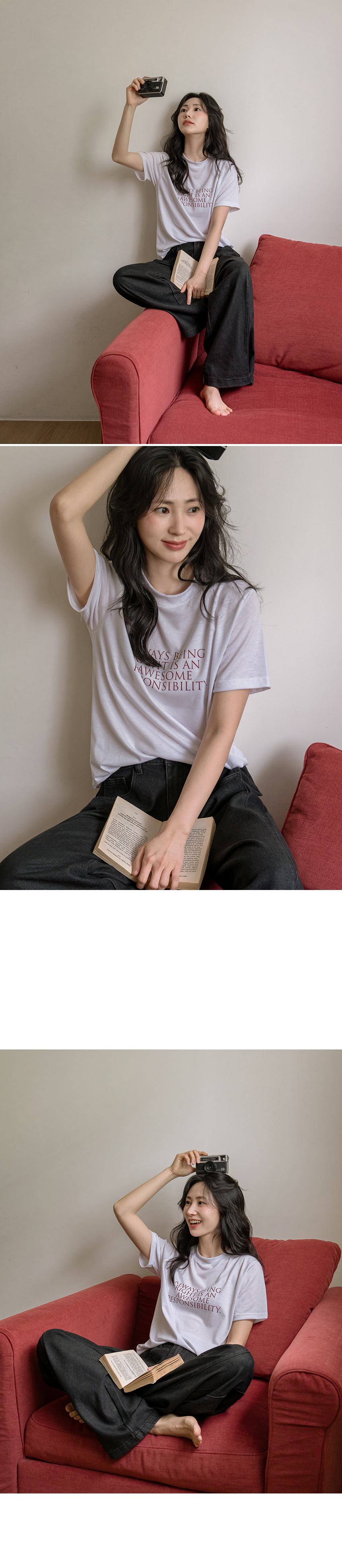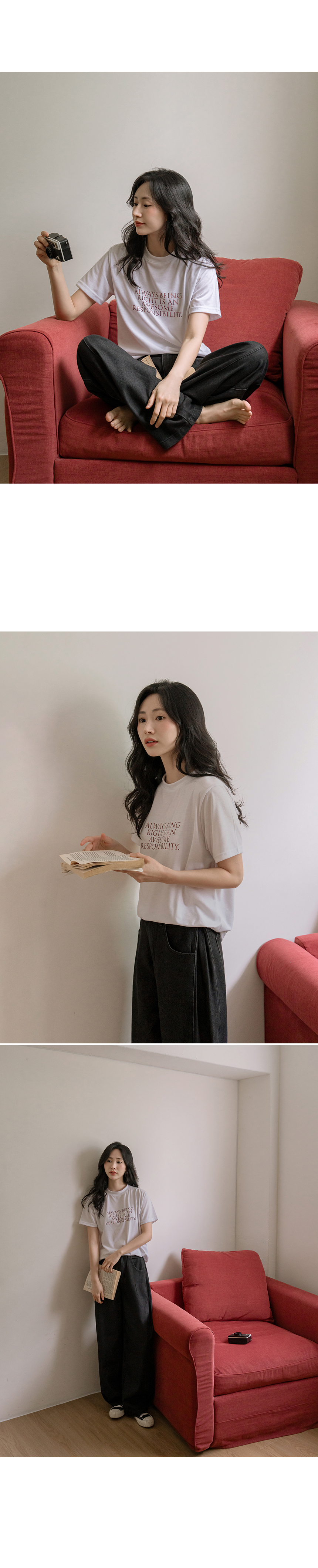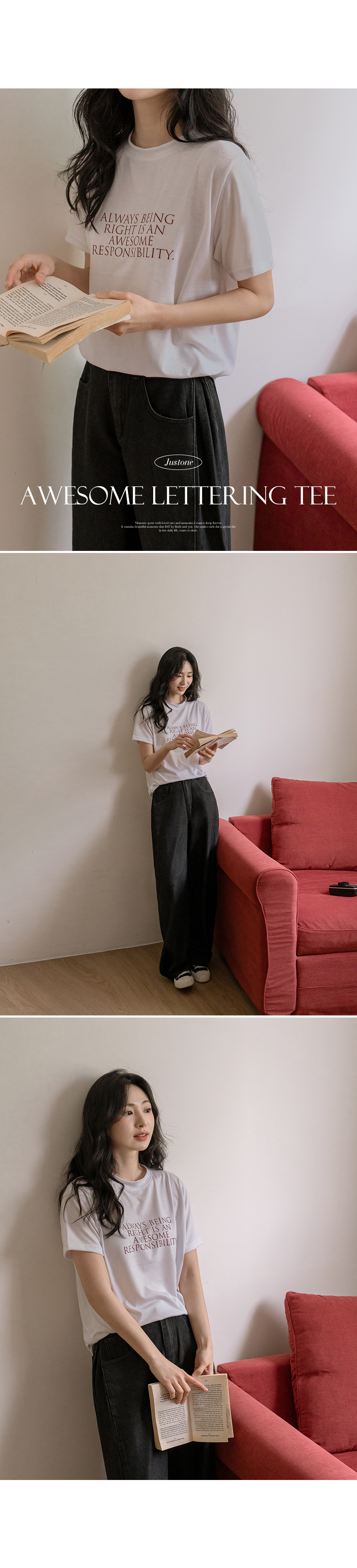 This basic short-sleeve T-shirt is soft, comfortable, and easy to wear. The clean lettering adds a subtle touch of style, making it perfect on its own or layered under a jacket or cardigan.