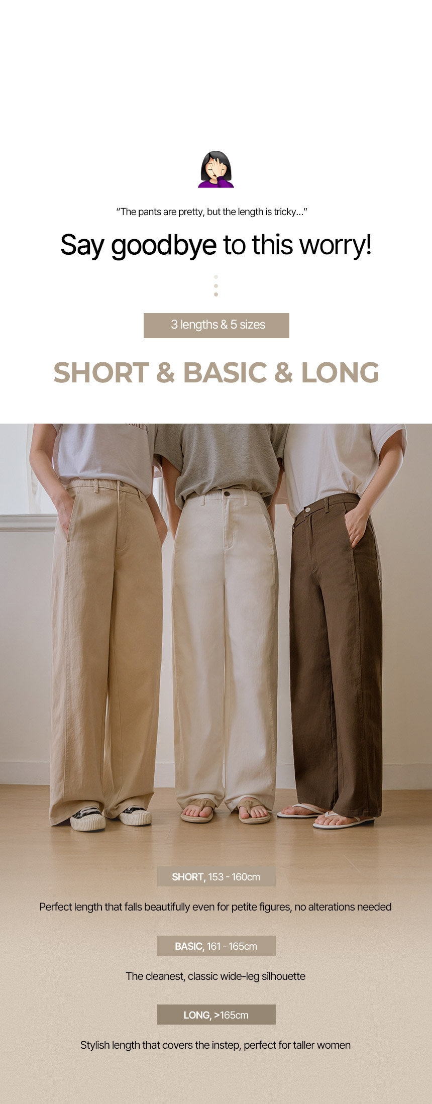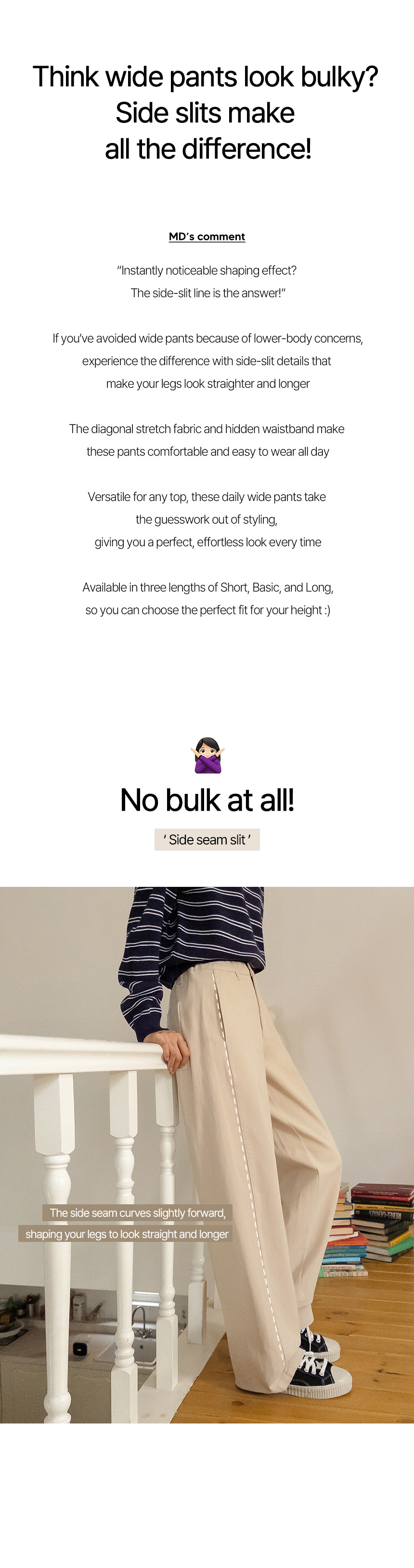 Flat Side-Slit Wide Pants (Short/Basic/Long)