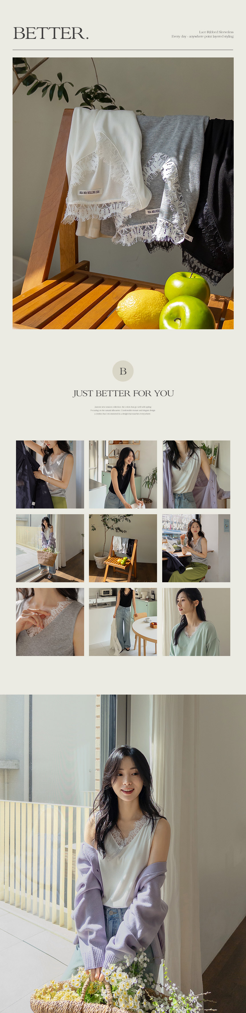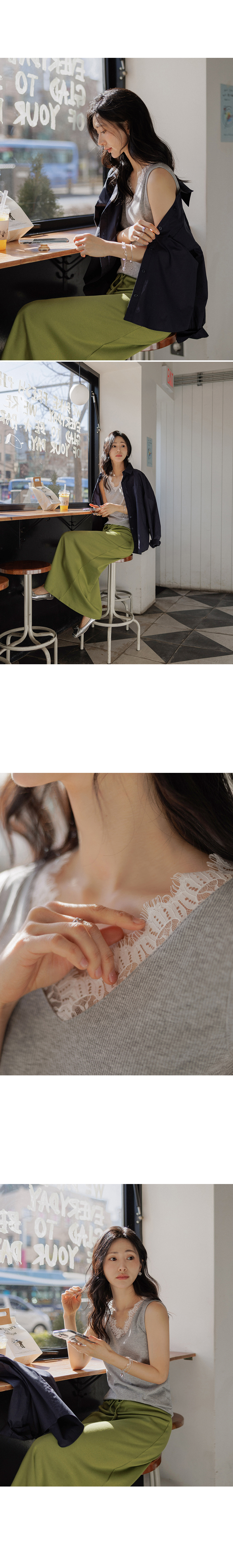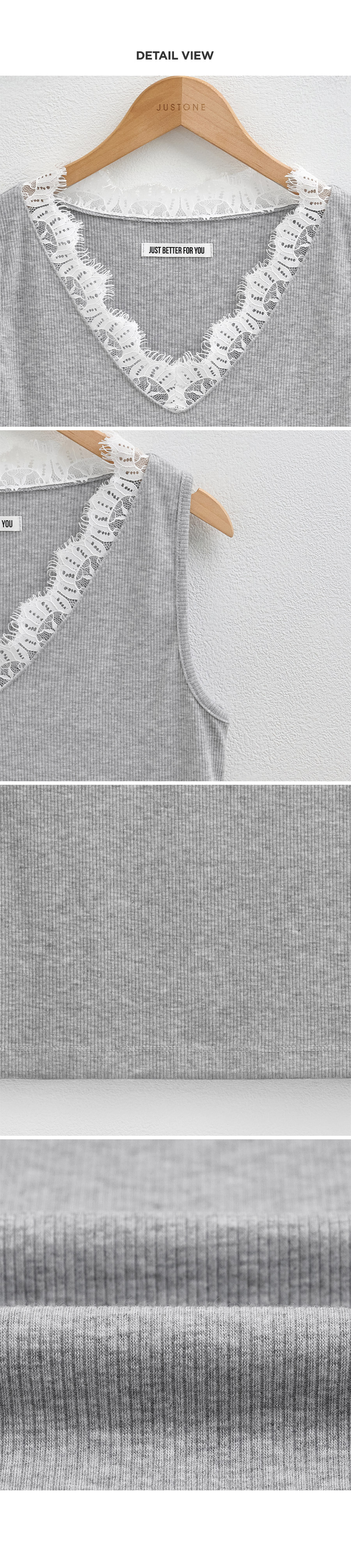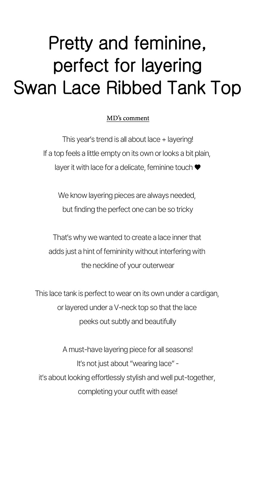 [JUST BETTER] Swan Lace Ribbed Tank Top