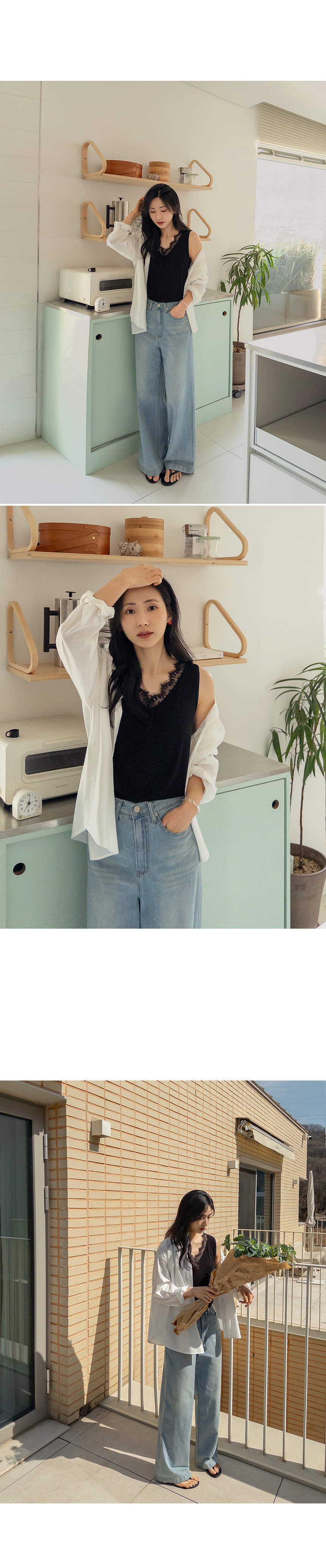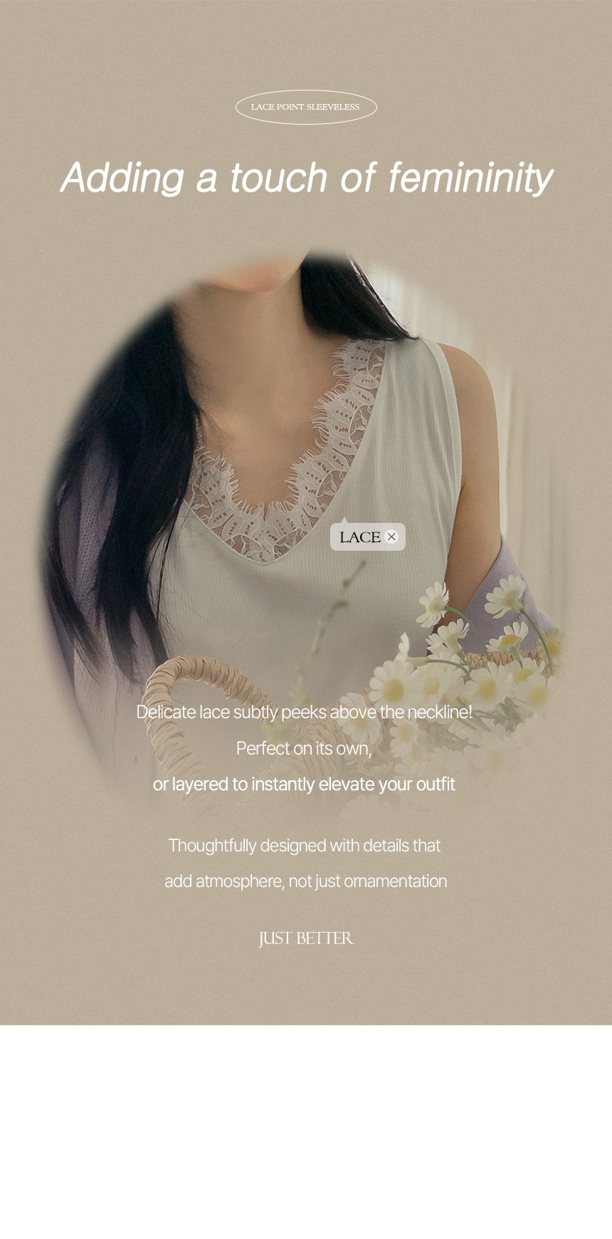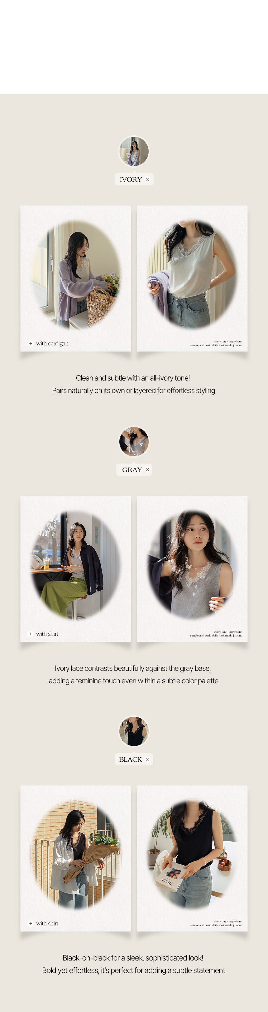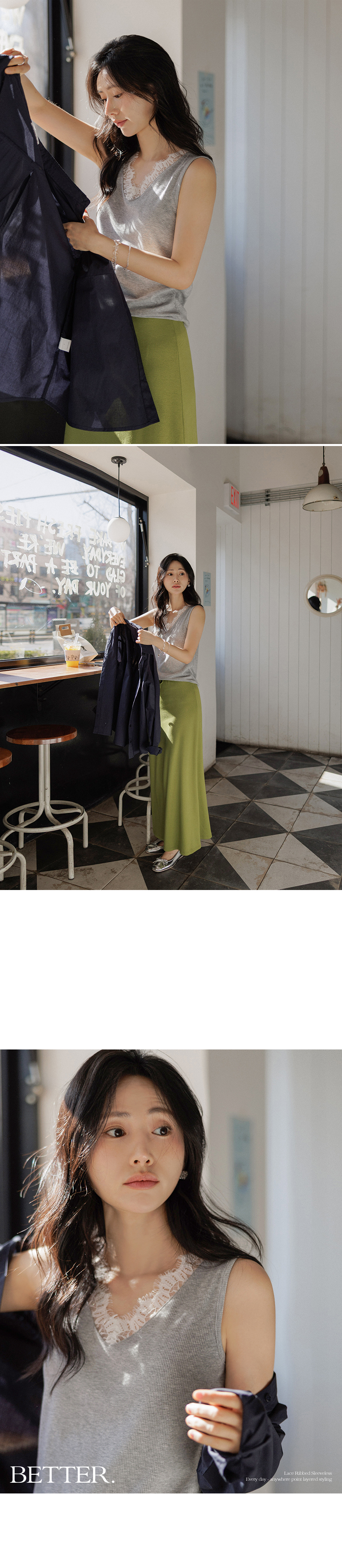 [JUST BETTER] Swan Lace Ribbed Tank Top