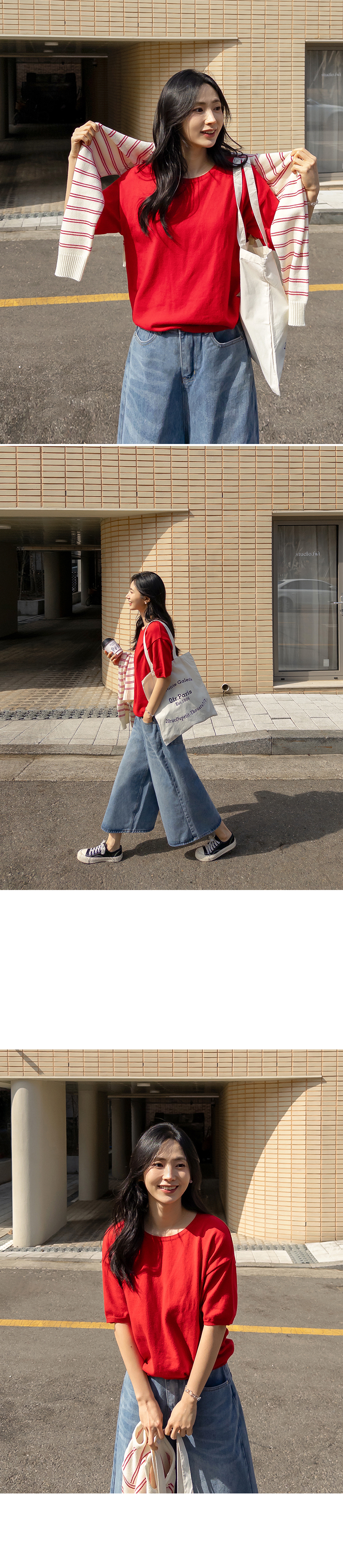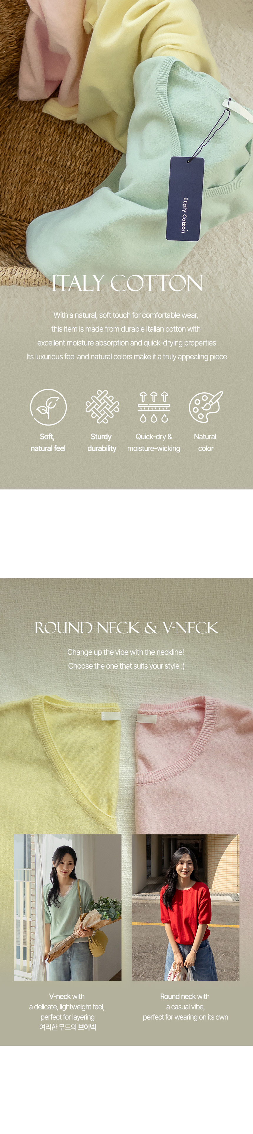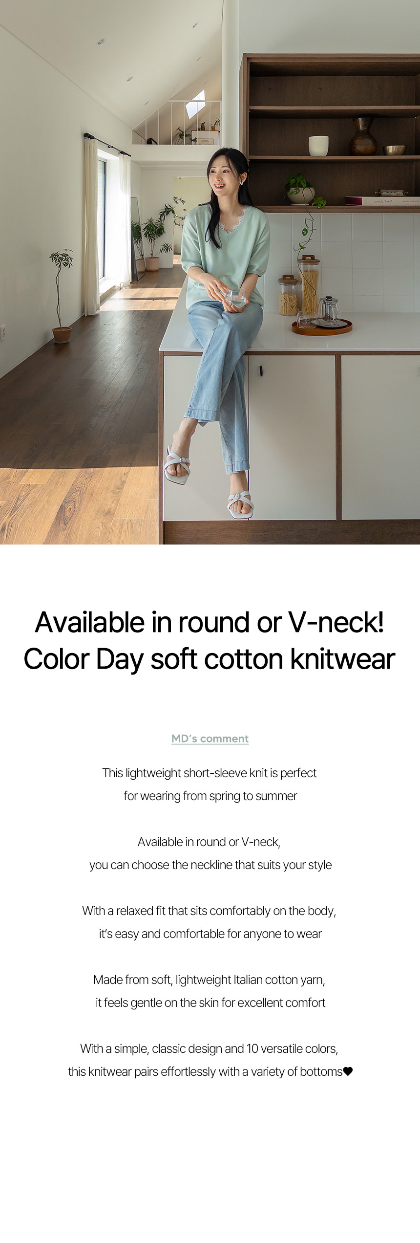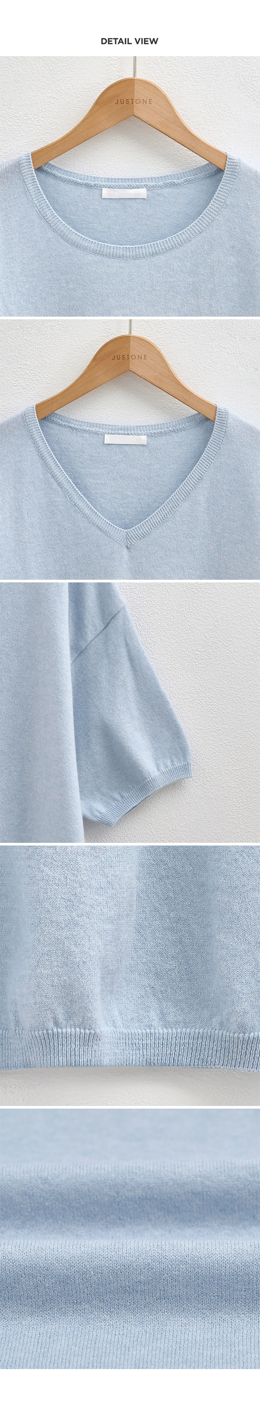 Color Day Cotton Short-sleeve Knitwear (Round/V-Neck)