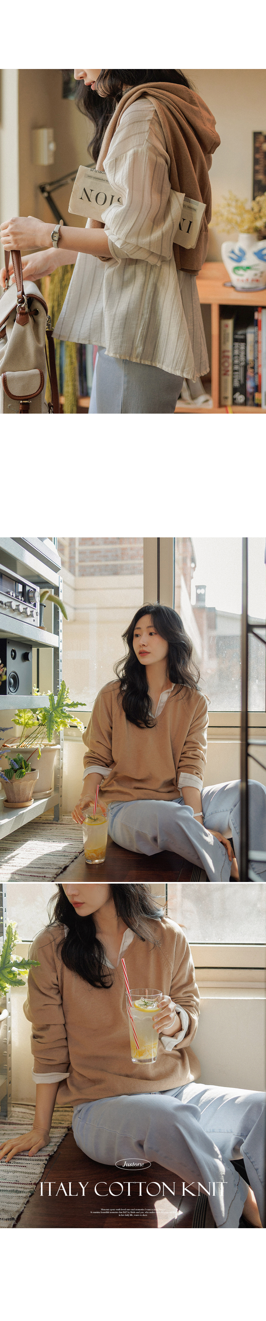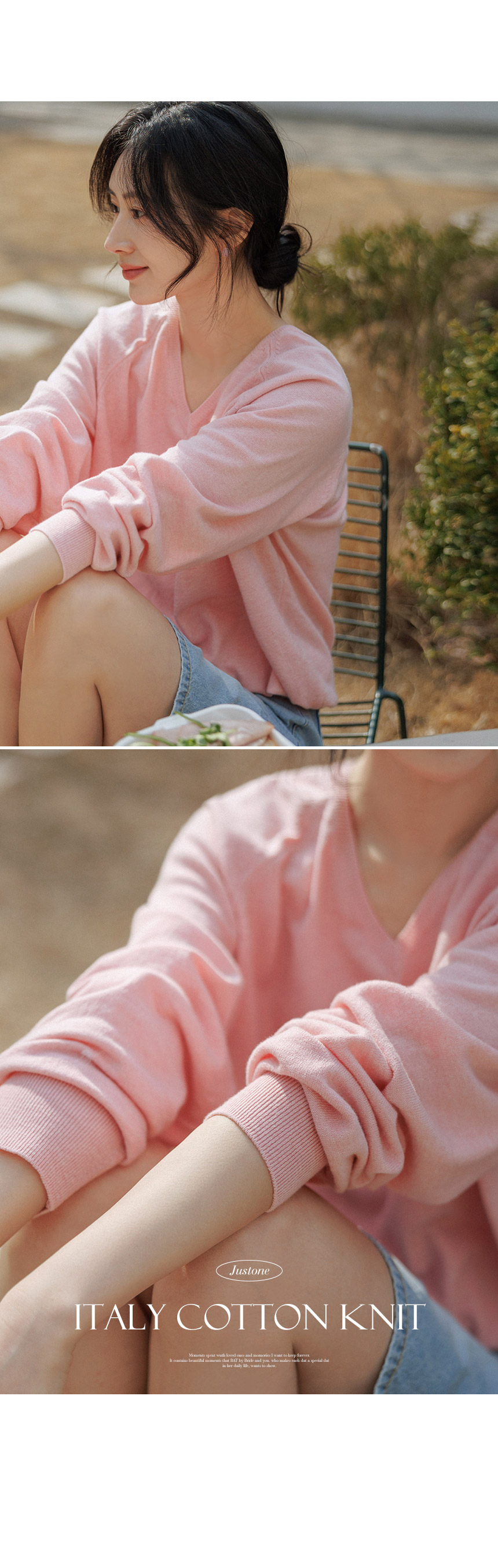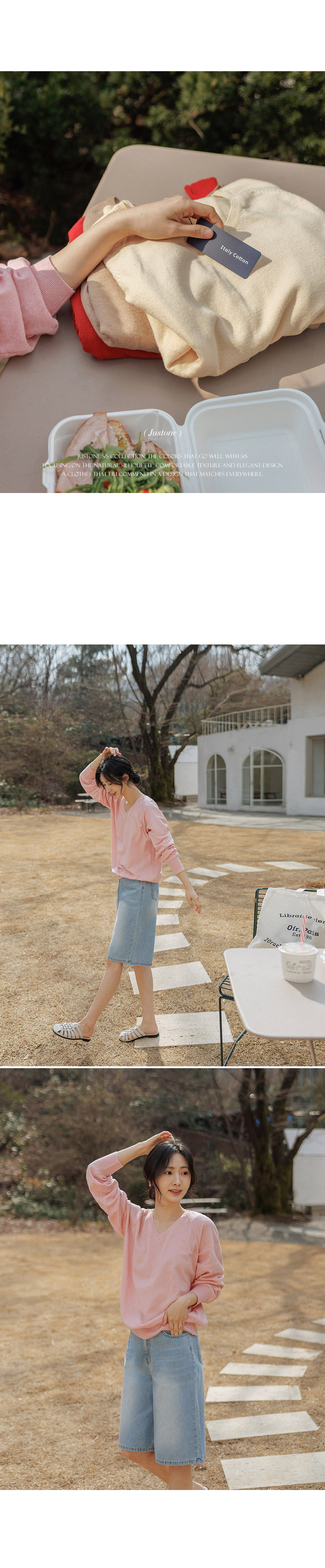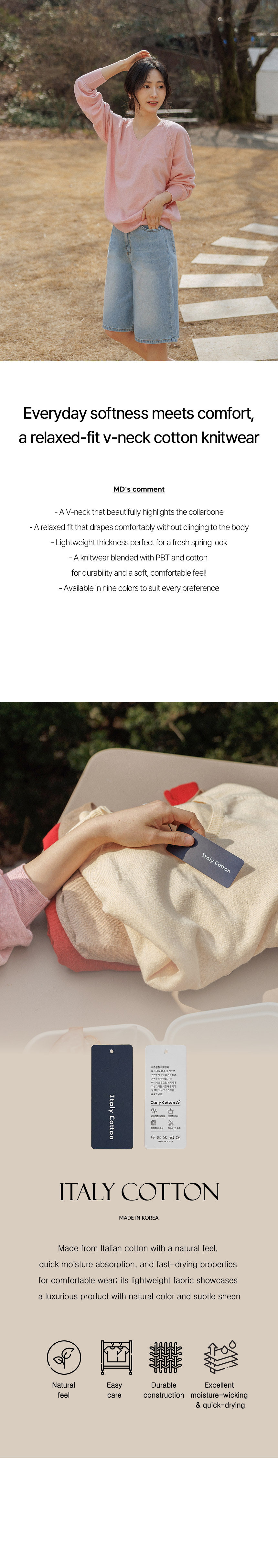Made from premium Italian cotton yarn, this V-neck knitwear offers lasting durability and a luxuriously soft touch. The relaxed fit ensures all-day comfort, while its light, airy texture makes it an ideal choice for refreshing spring days.