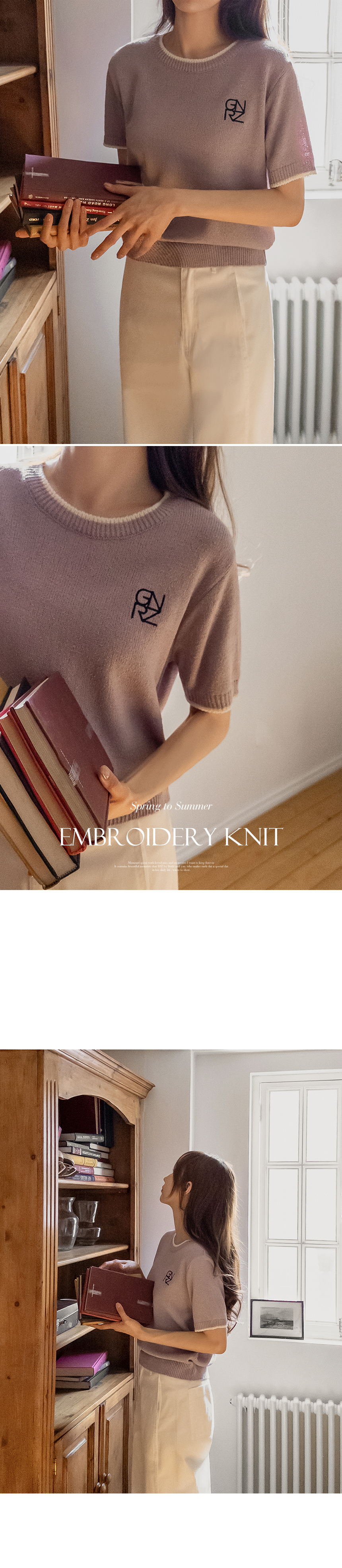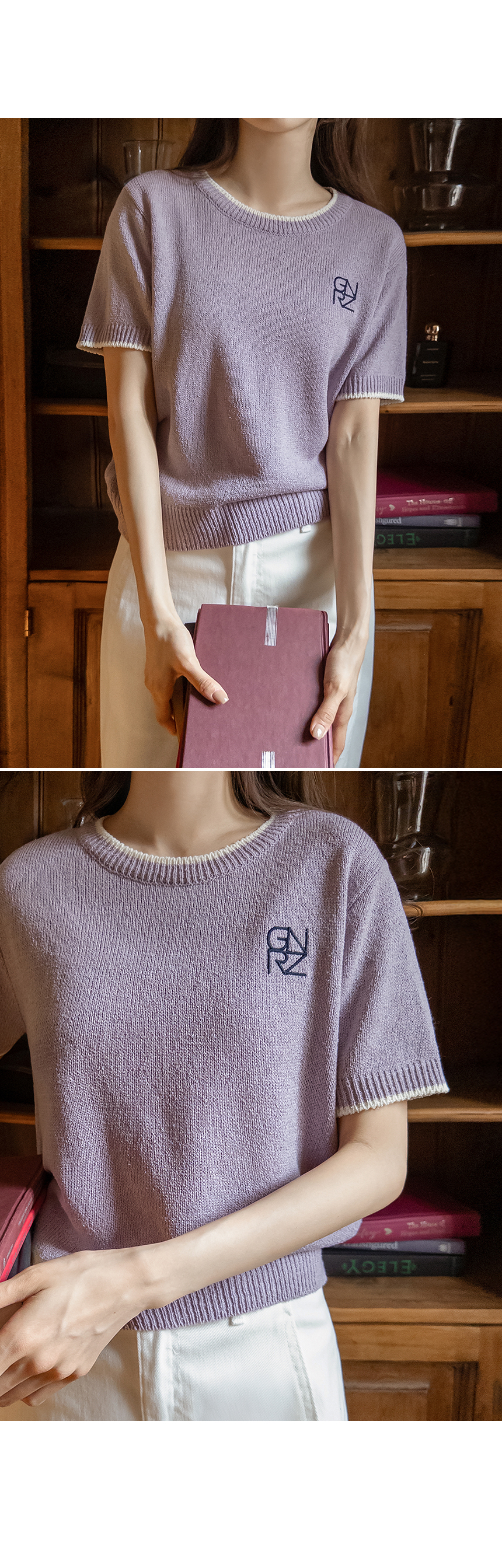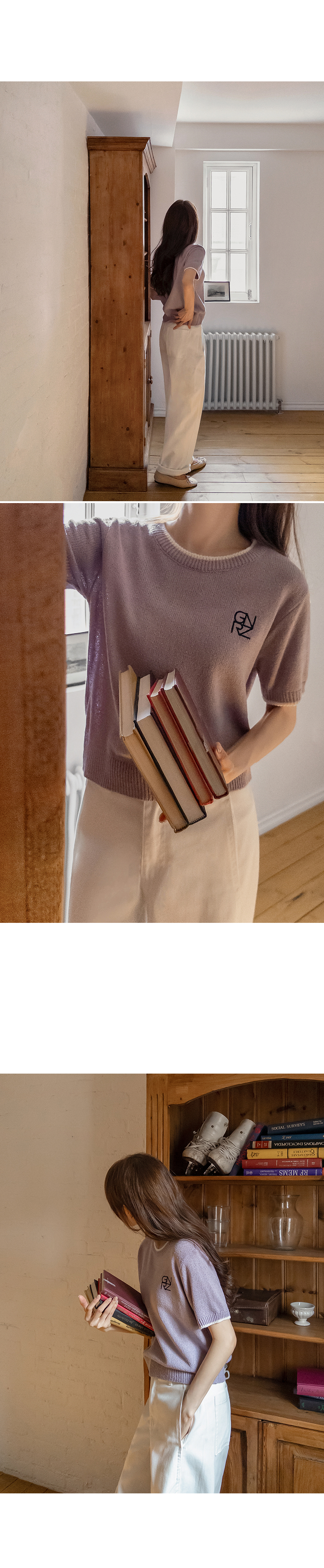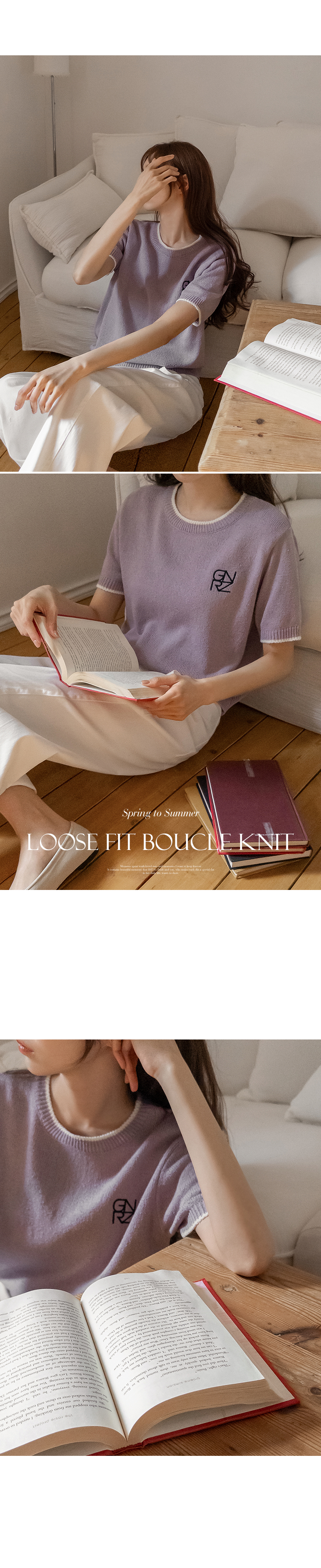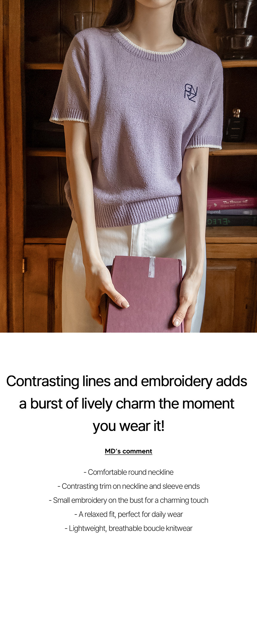 A short-sleeve knitwear made from cool, breathable bouclé fabric that doesn’t cling to the body. Finished with neat embroidery as a subtle accent, it’s perfect for everyday wear!