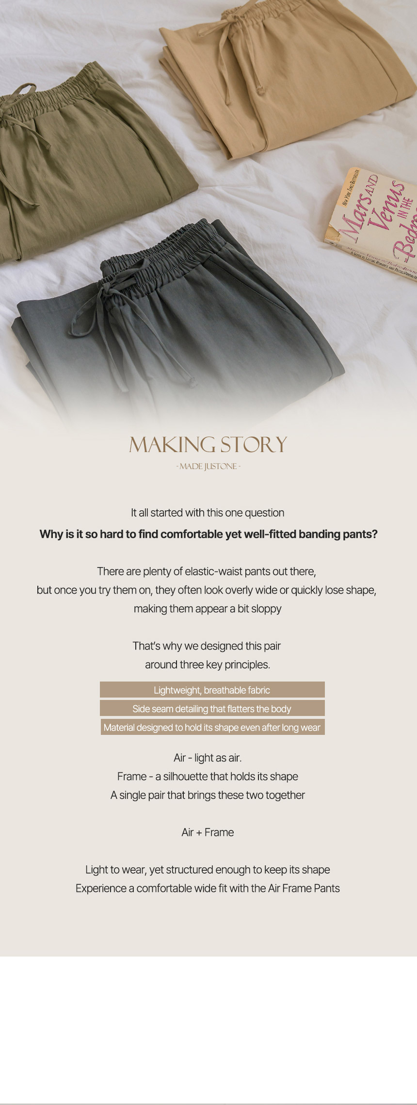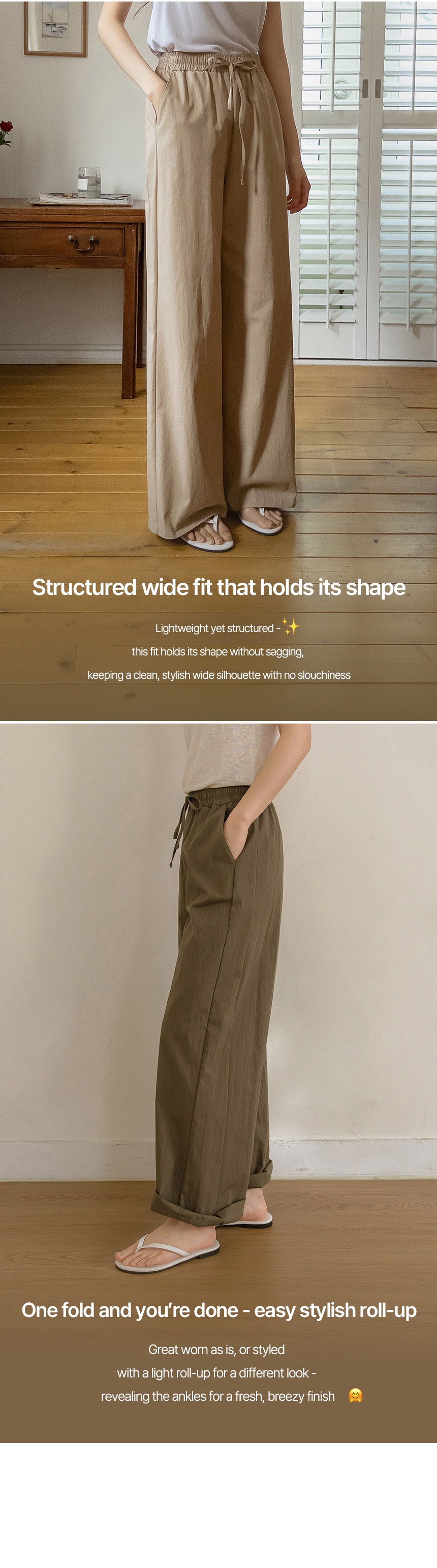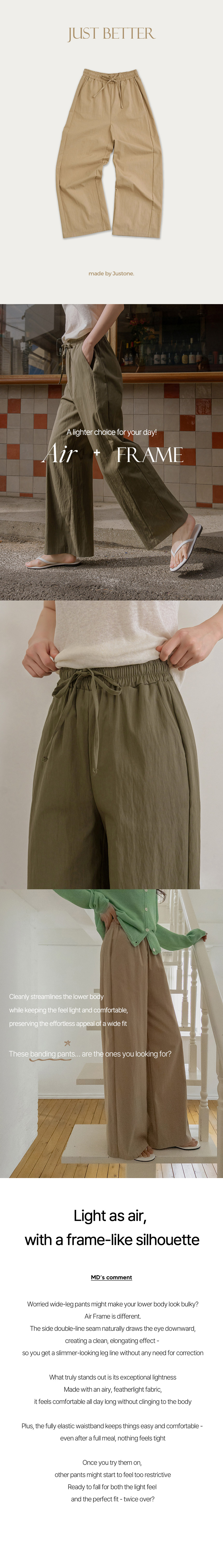 Are you looking for pants that feel as light as air yet offer a structured fit? Let me introduce these elastic-waist pants for the S/S season, designed with an “Air + Frame” concept to create a clean and fresh silhouette. :)