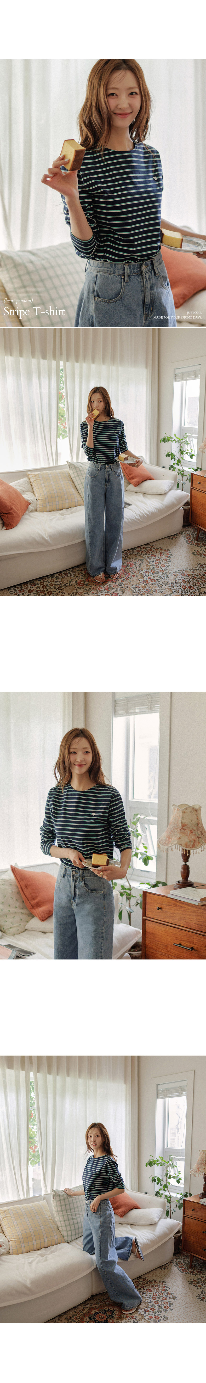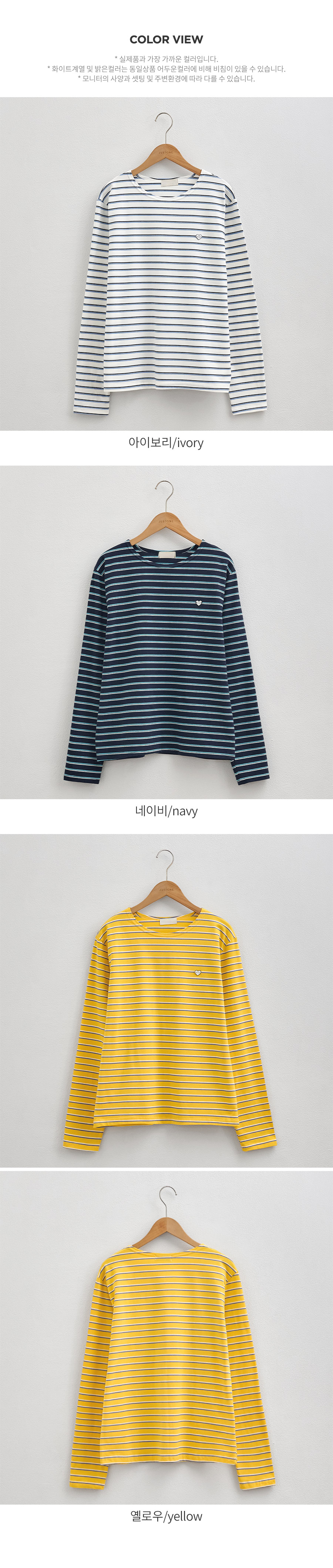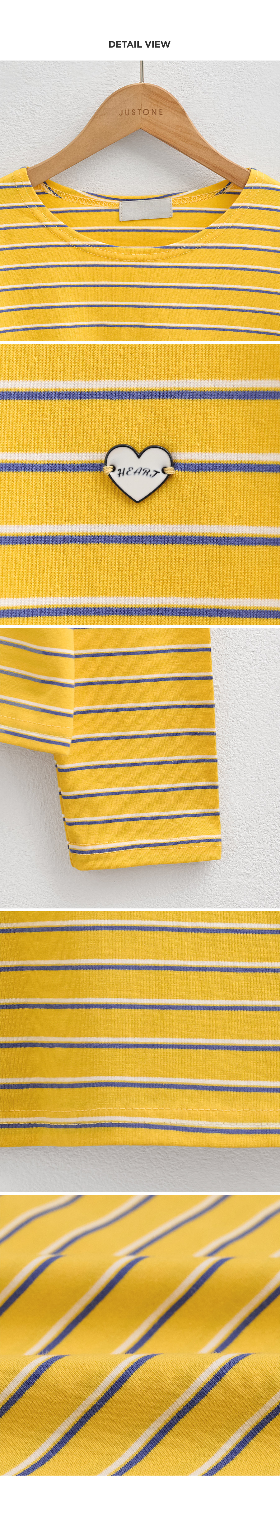 This striped tee features a charming colorful combination with a small heart pendant as a focal point. It is a T-shirt that creates a lively daily look just by casually tossing it over jeans!