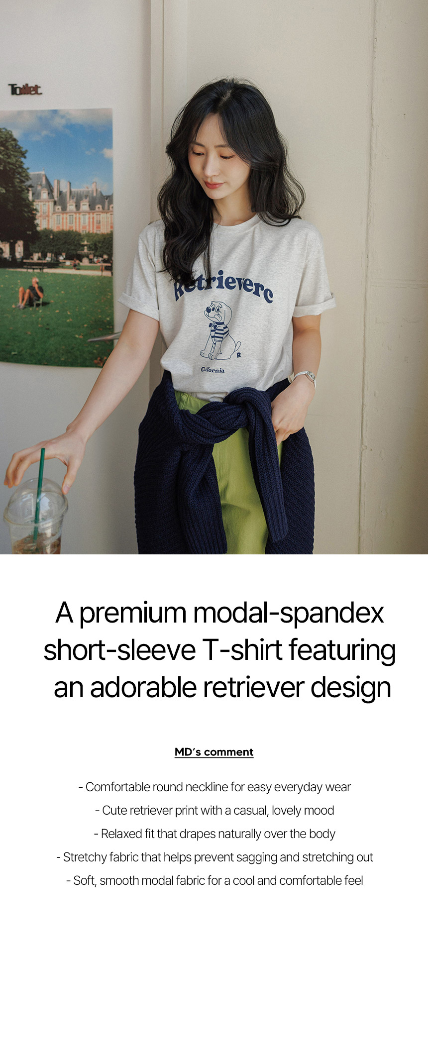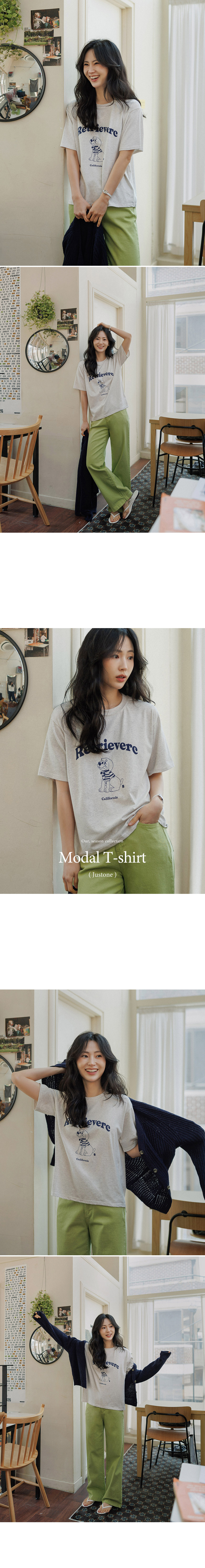 This is a short-sleeved T-shirt featuring a pretty retriever print. Made from modal material, it is soft and supple, feeling cool against the skin! Plus, with its comfortable relaxed fit, it is perfect for easy, everyday wear.