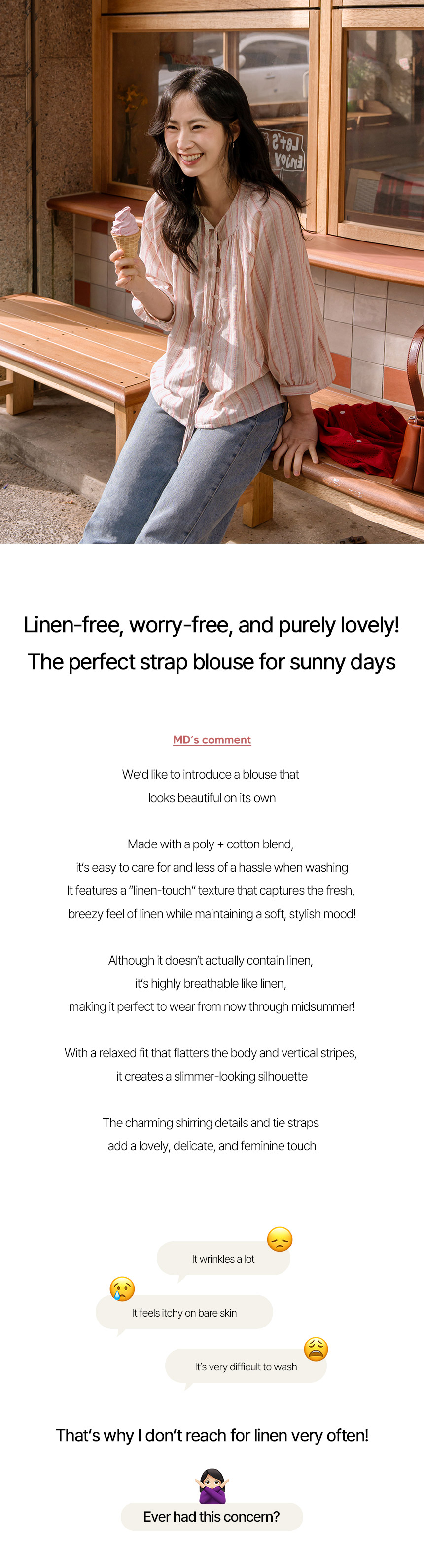 It wrinkles less than linen, yet offers the same cool, breezy feel! Perfect for a fresh and lovely look this S/S season, it pairs beautifully with these pretty striped colors to complete an adorable outfit.