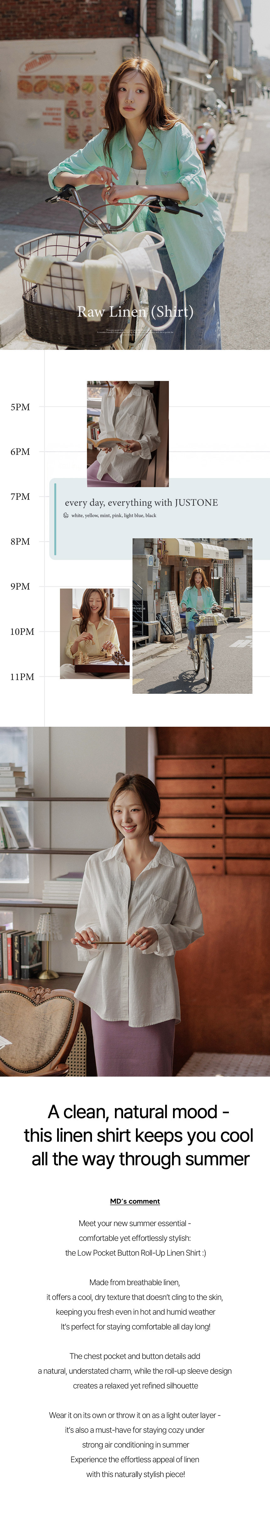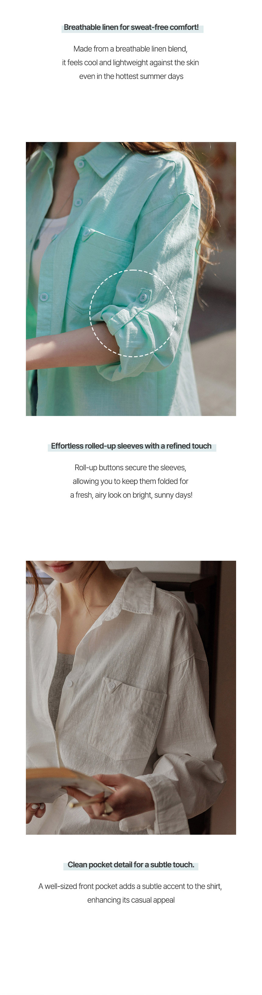 This lightweight, highly breathable linen shirt is perfect for staying cool. Designed with roll-up sleeves, it’s an easy piece to wear throughout the peak of summer. The soft pastel colors add a fresh, bright touch to your look.
