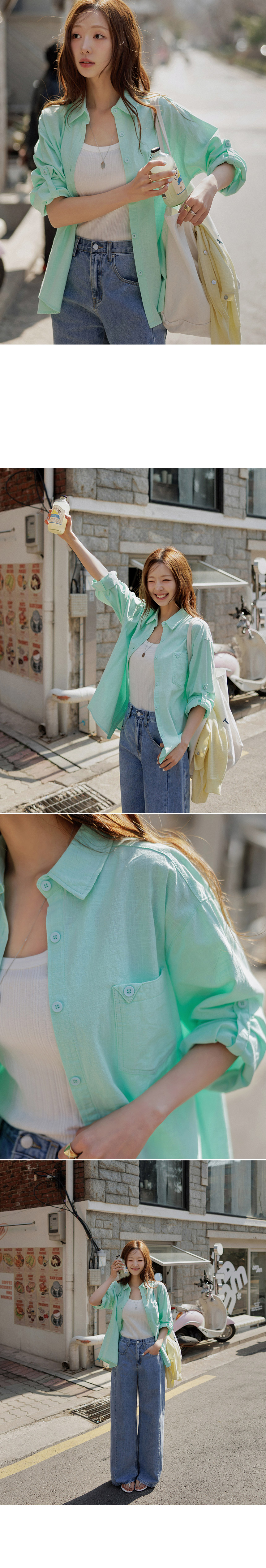 Low Pocket Button Roll-Up Linen Shirt