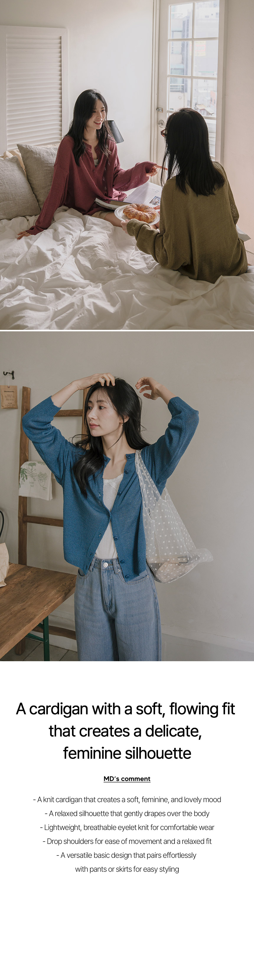 This is a knit cardigan that creates a delicate mood with a silhouette flowing naturally. Stay cool all summer in our lightweight, breathable open-knit weave.