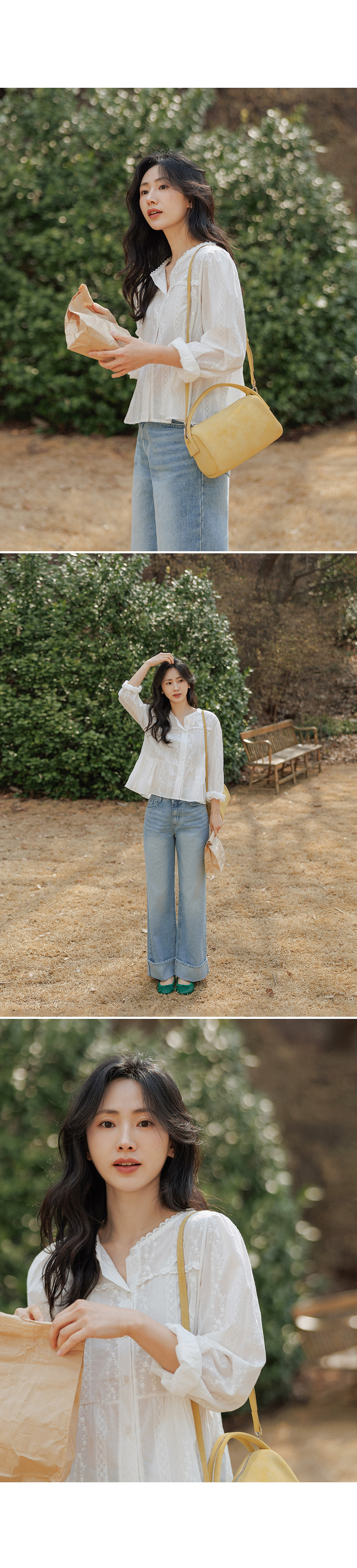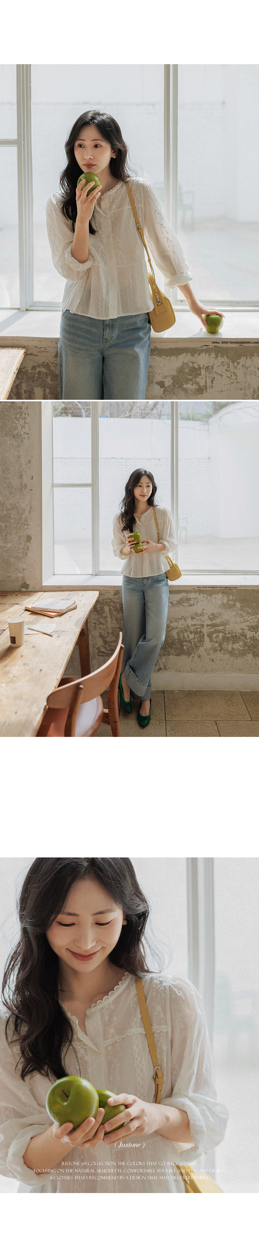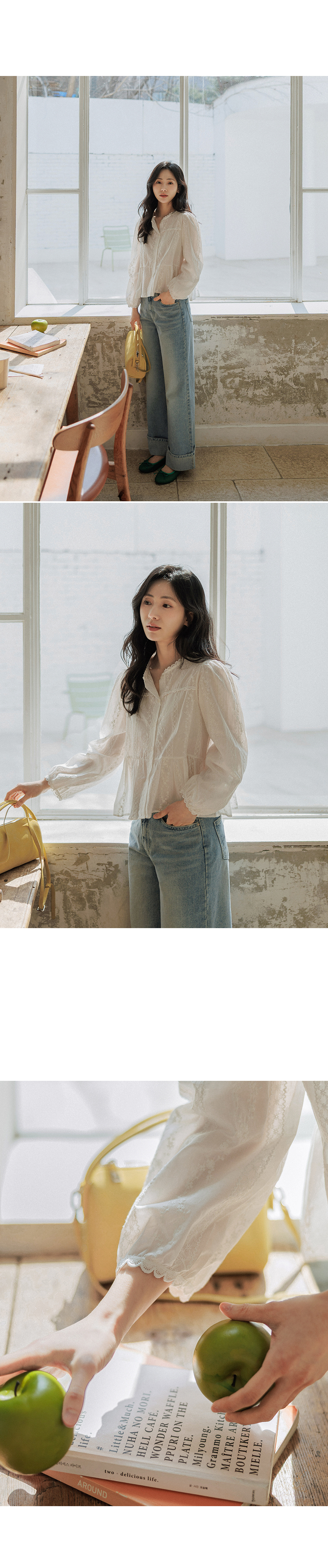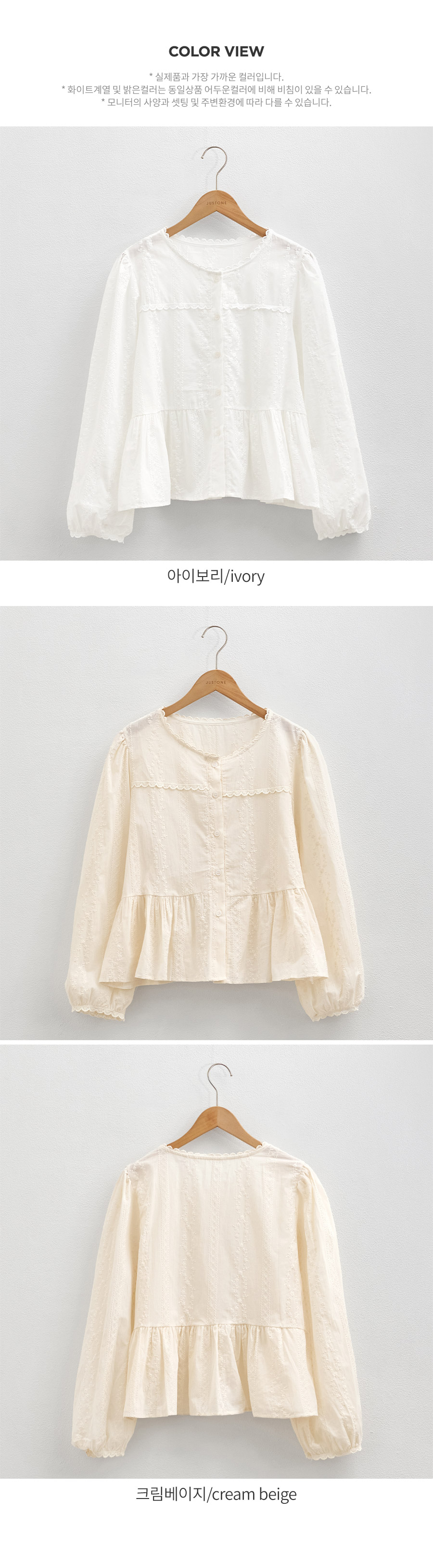 This blouse features delicate small floral embroidery on lightweight cotton, creating a soft and lovely mood. The peplum design gently flares from the waist, offering comfortable coverage while enhancing a feminine silhouette.