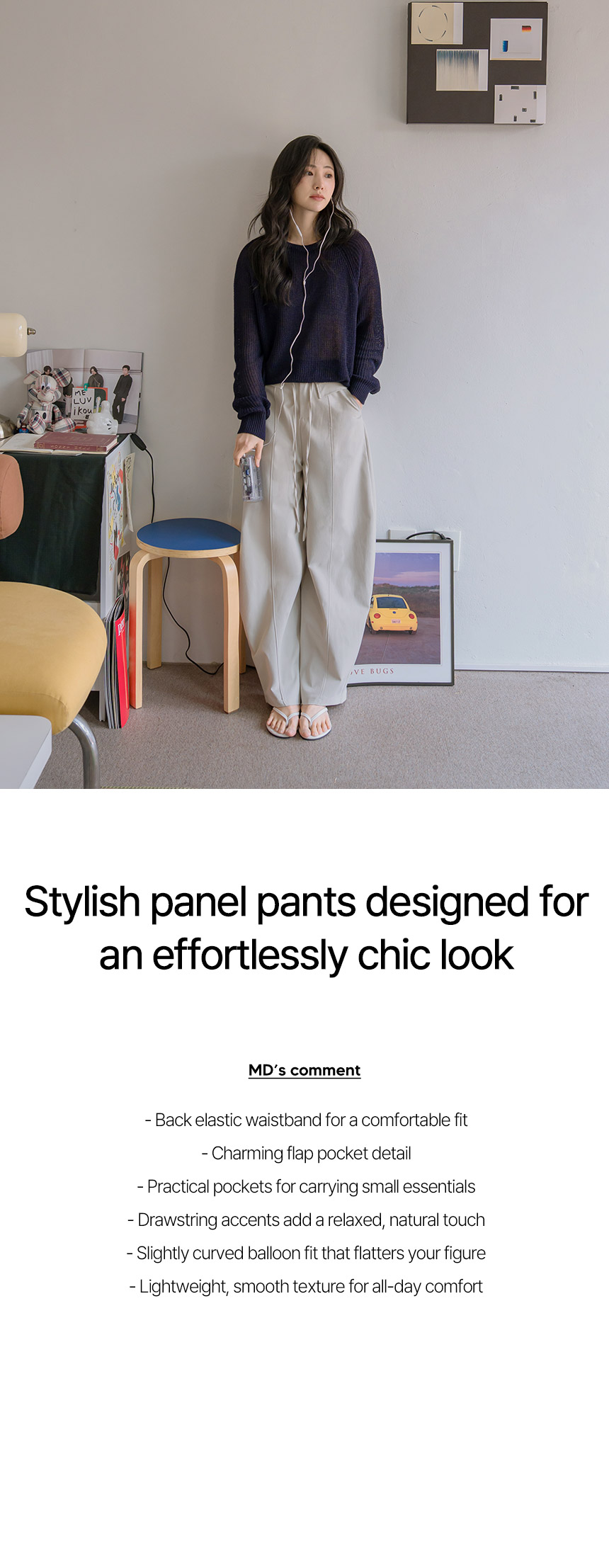 These panel pants feature pocket and drawstring details that add a stylish touch. The slightly curved silhouette flatters your figure while giving off a trendy, modern vibe.