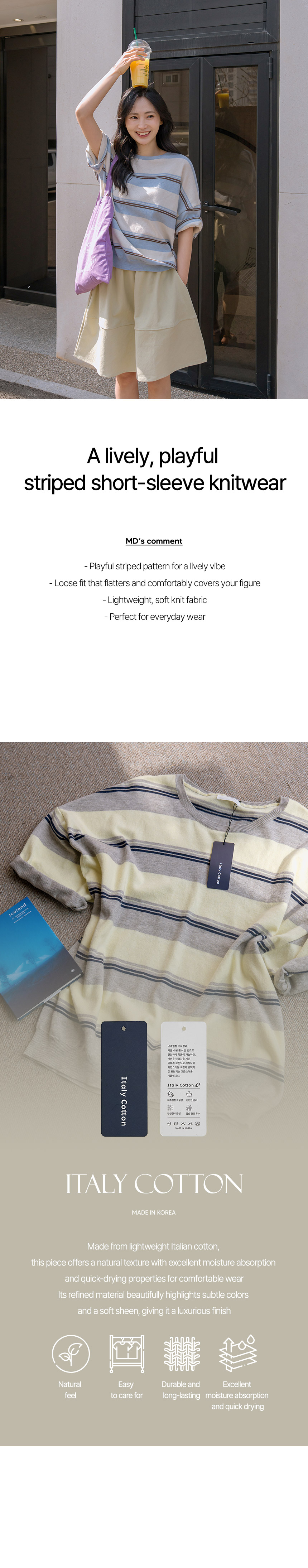 This short-sleeve knit offers a relaxed fit that flatters your figure for a comfortable, easy-to-wear style. The striped pattern adds a chic accent, while the soft Italian cotton makes it perfect for everyday wear :)