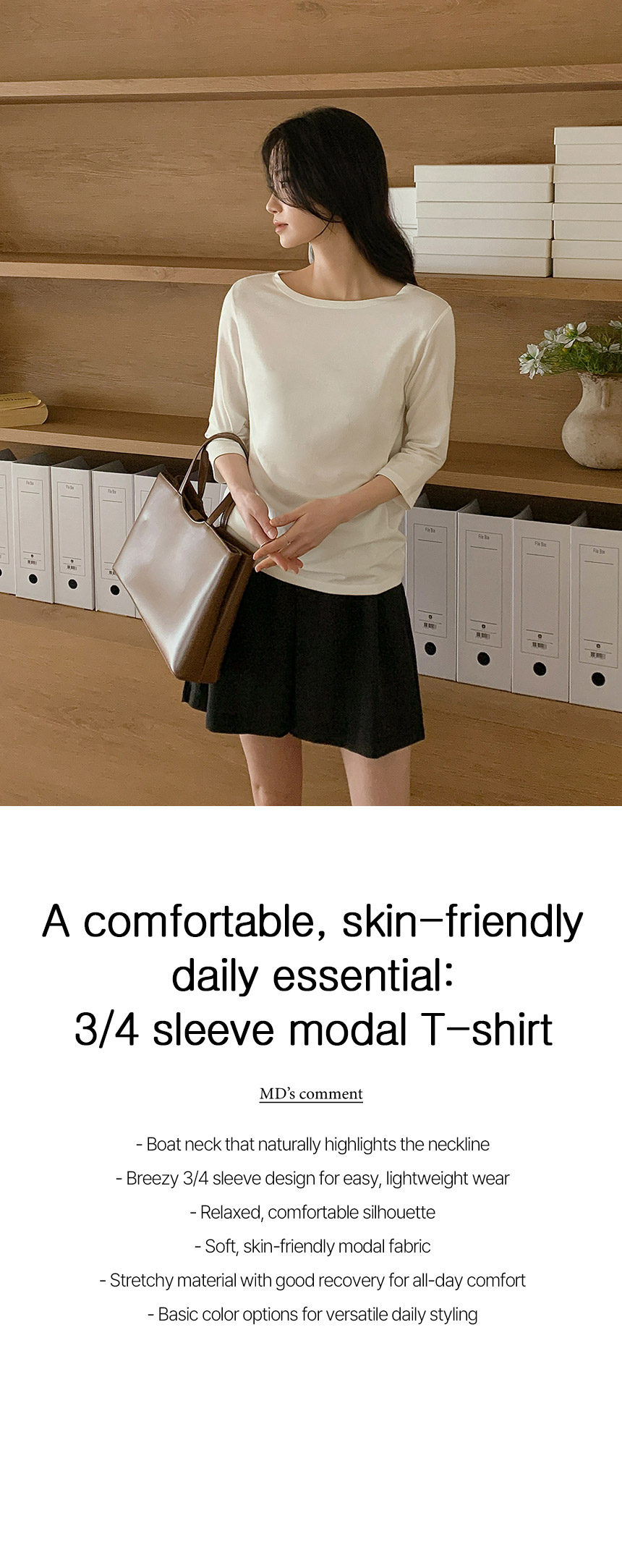 Minimal Modal 3/4‑sleeve T‑shirt