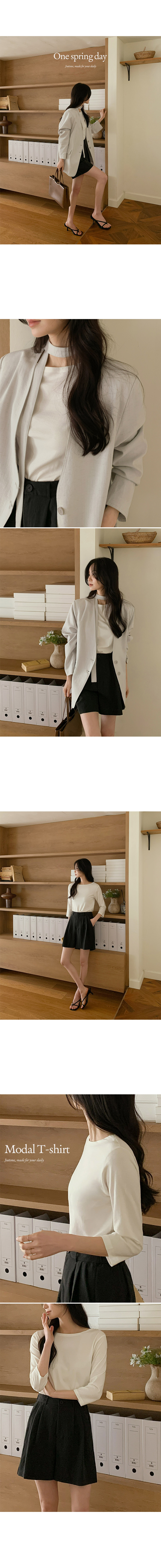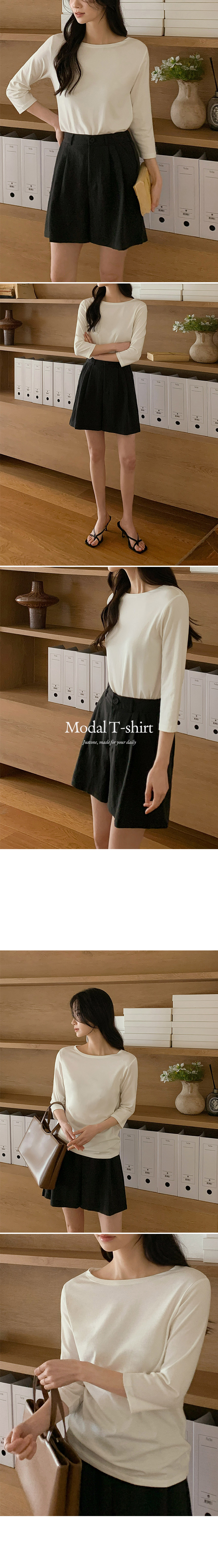 This T‑shirt adds a delicate vibe with its cheerful 3/4‑length sleeves and a lip neckline that softly highlights the collarbone. Made from lightweight, soft modal fabric, it feels comfortable against the skin and is perfect for easy, everyday wear.