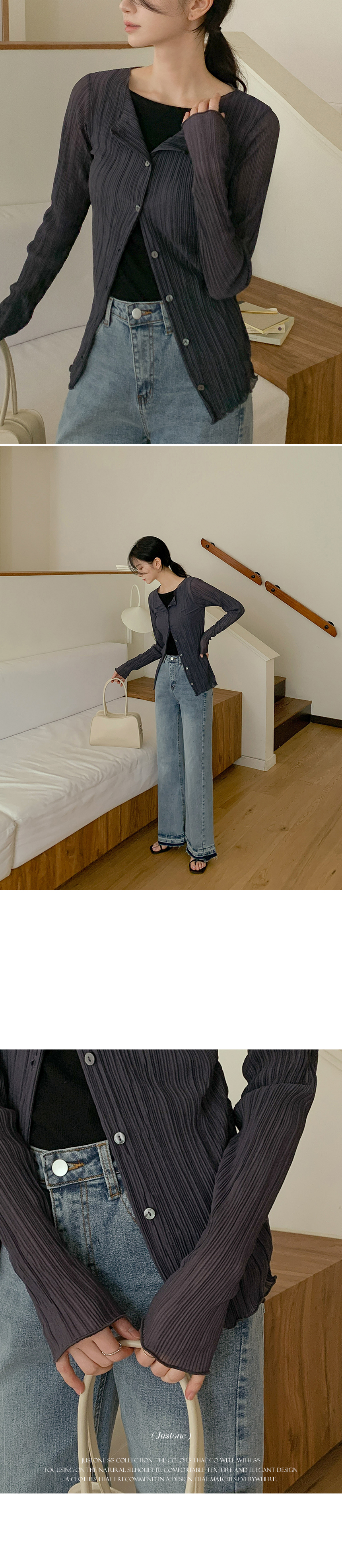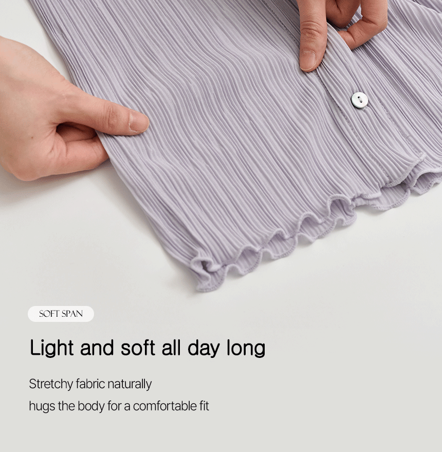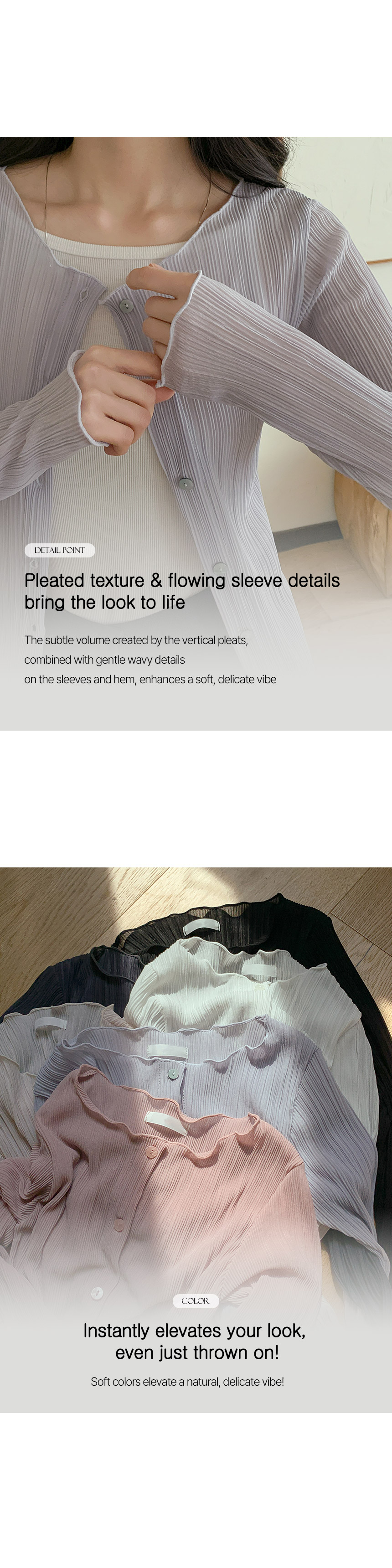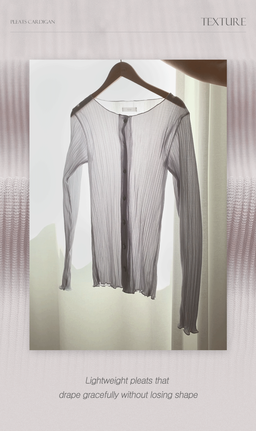 This cardigan features three-dimensional pleats that create a delicate, refined look. Thin and lightweight, it’s easy to carry on the go, while the soft, stretchy fabric drapes naturally for a flattering silhouette.