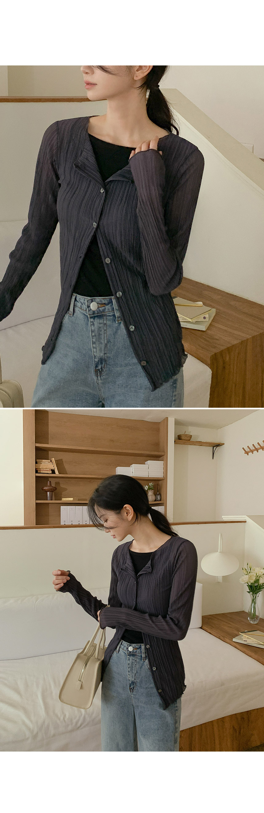 This cardigan features three-dimensional pleats that create a delicate, refined look. Thin and lightweight, it’s easy to carry on the go, while the soft, stretchy fabric drapes naturally for a flattering silhouette. -