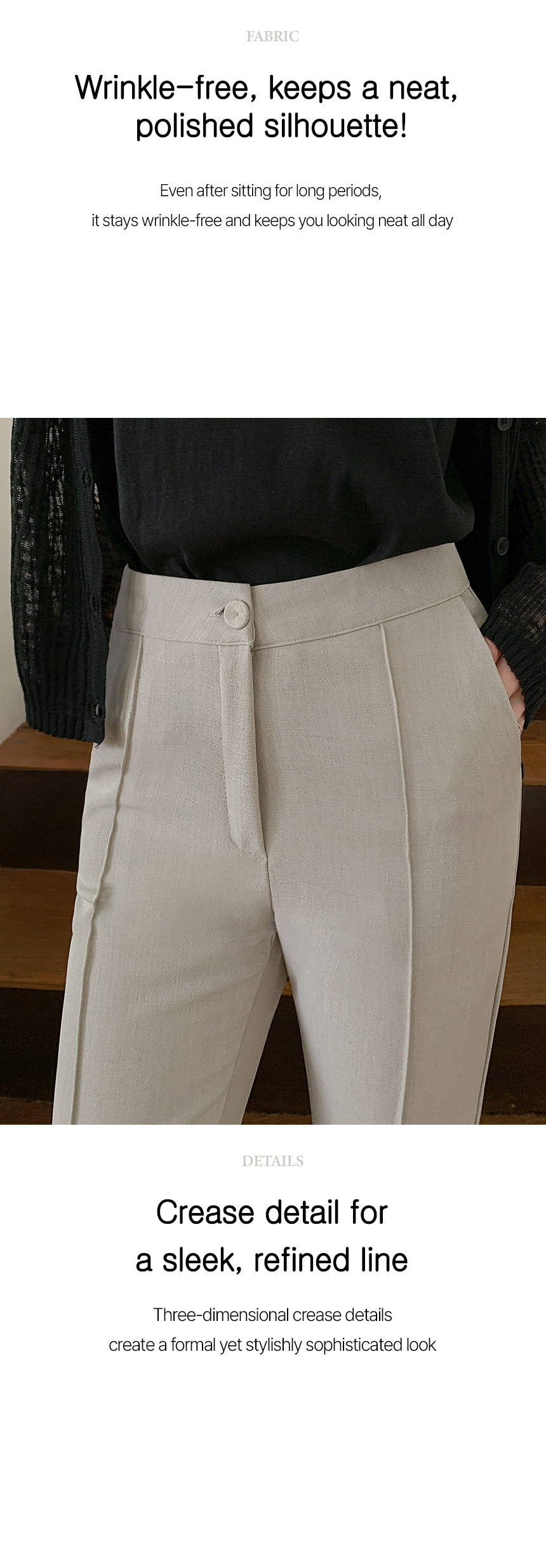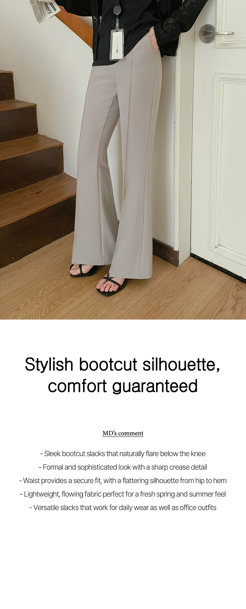 These bootcut slacks showcase three-dimensional crease details that add a refined touch of sophistication. Crafted from a lightweight fabric ideal for spring and summer, they feature a wrinkle-resistant, fluid drape that keeps your look effortlessly polished all day long.