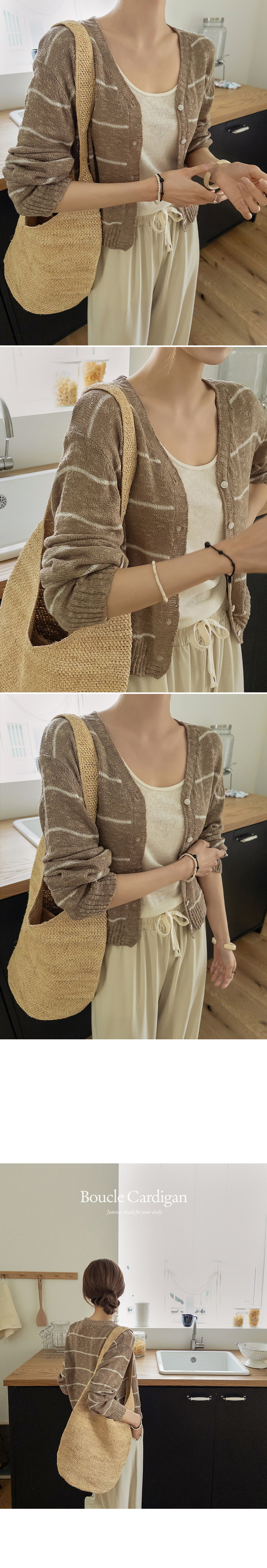Soft Slub Striped Boucle Cardigan