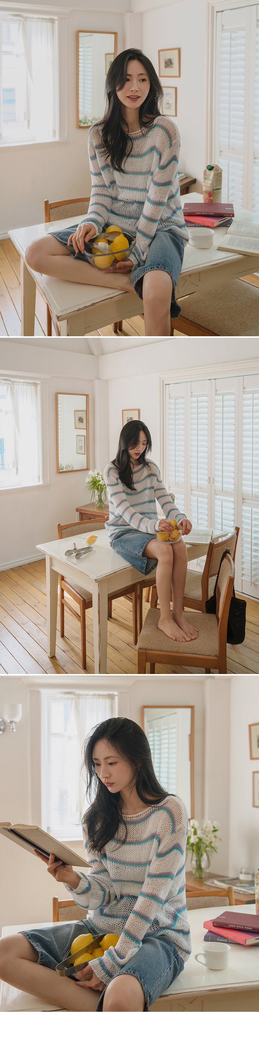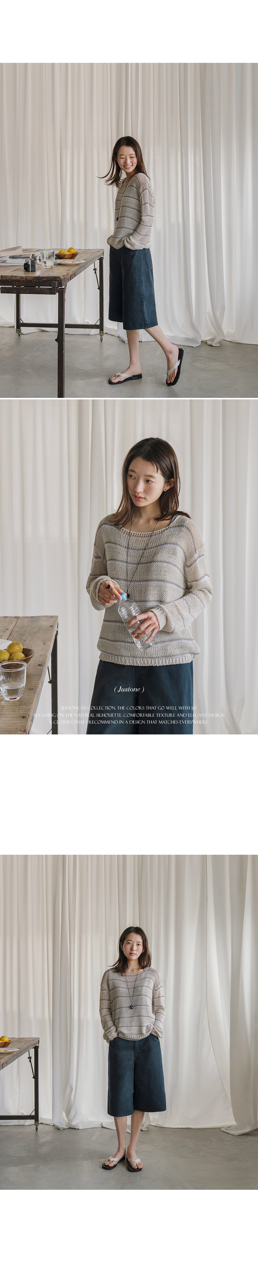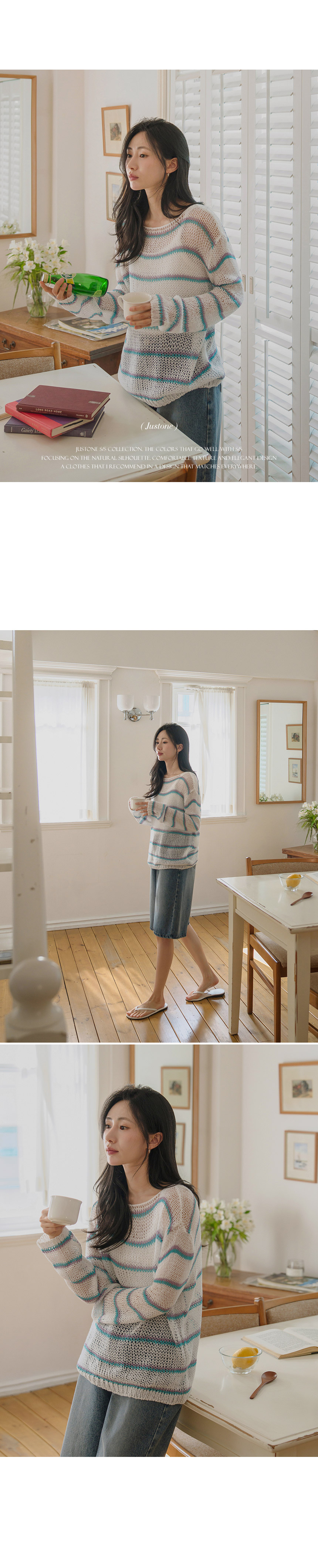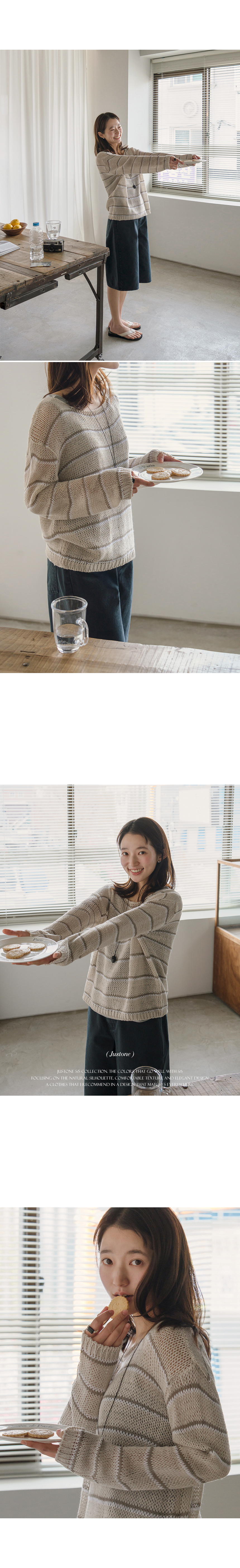 This knit sweater features a loose fit that creates a soft, delicate mood, while its airy weave ensures excellent breathability - perfect for summer. The striped pattern adds a stylish focal point to complete the look.