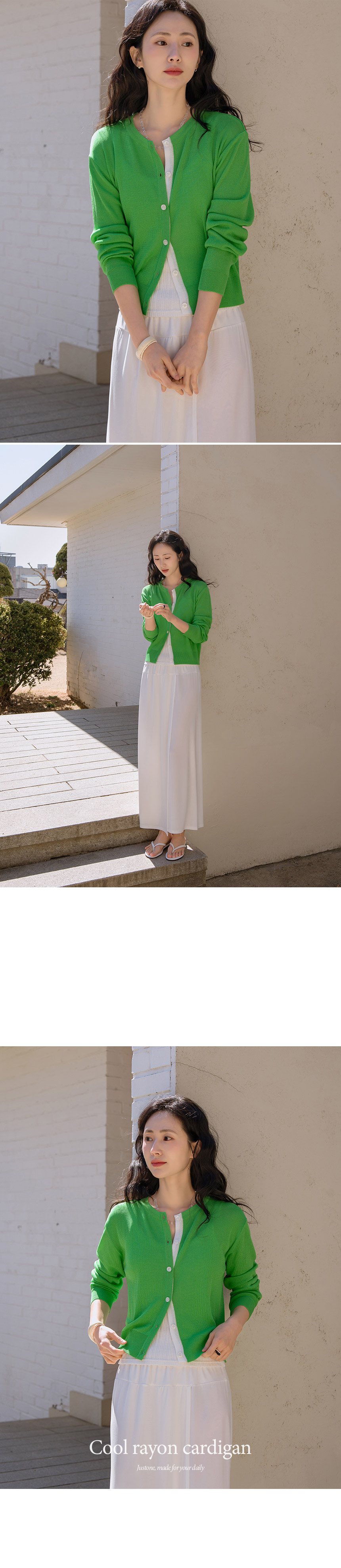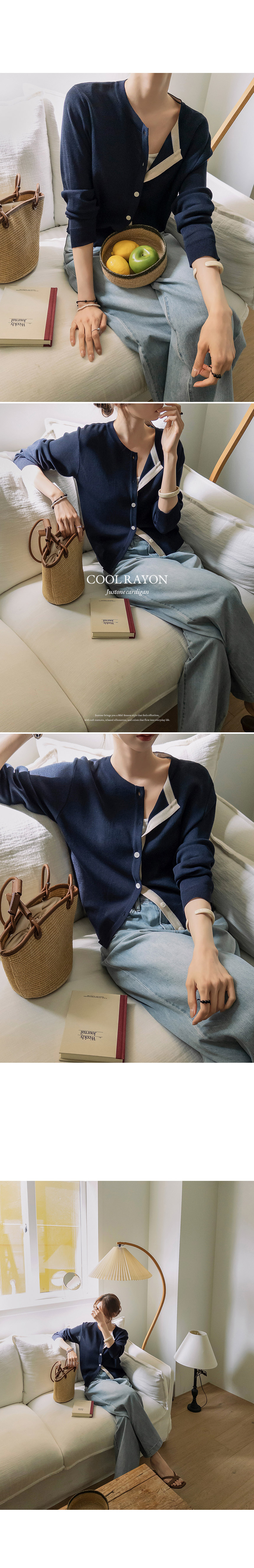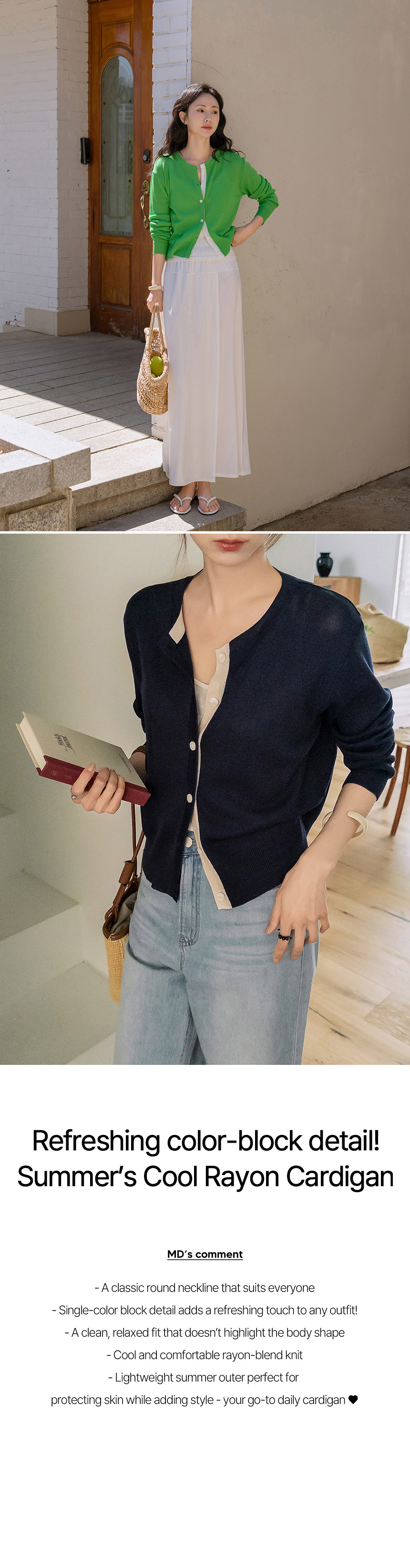This cardigan offers a refreshing look with contrasting colors along the placket. Crafted from a lightweight, smooth rayon-blend knit, it keeps you cool and comfortable, making it perfect for wearing even in the height of summer.