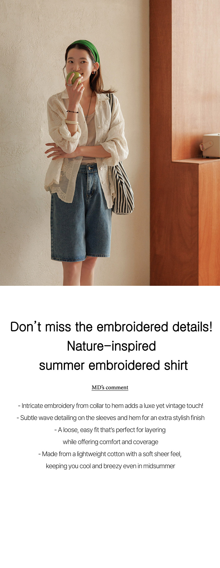 Delicate embroidery from collar to hem gives this shirt a luxurious yet vintage feel. Its relaxed fit makes it perfect as a lightweight summer layer, effortlessly elevating your look while providing coverage.