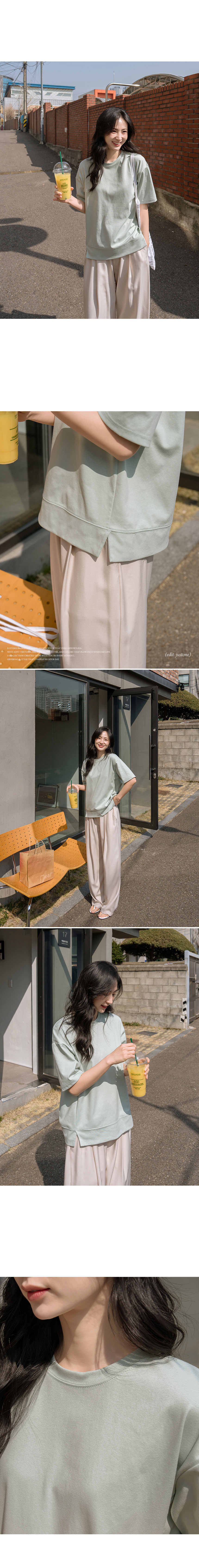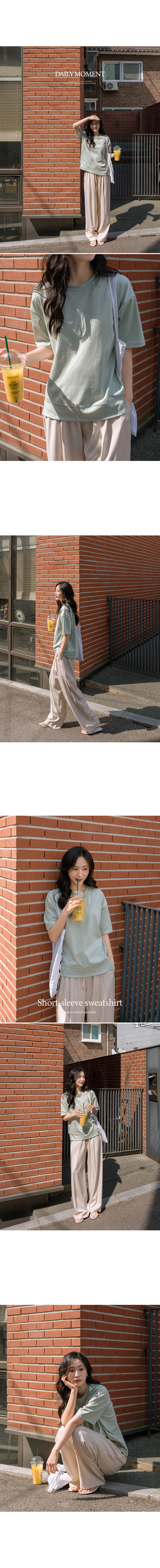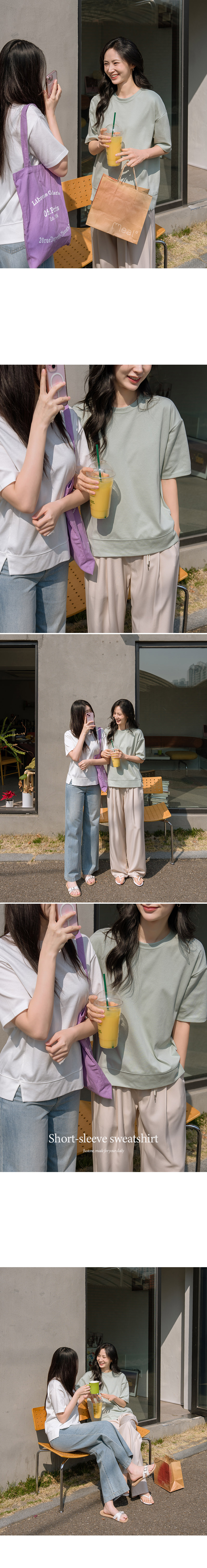 Stretchy Side-slit Short-sleeve Sweatshirt